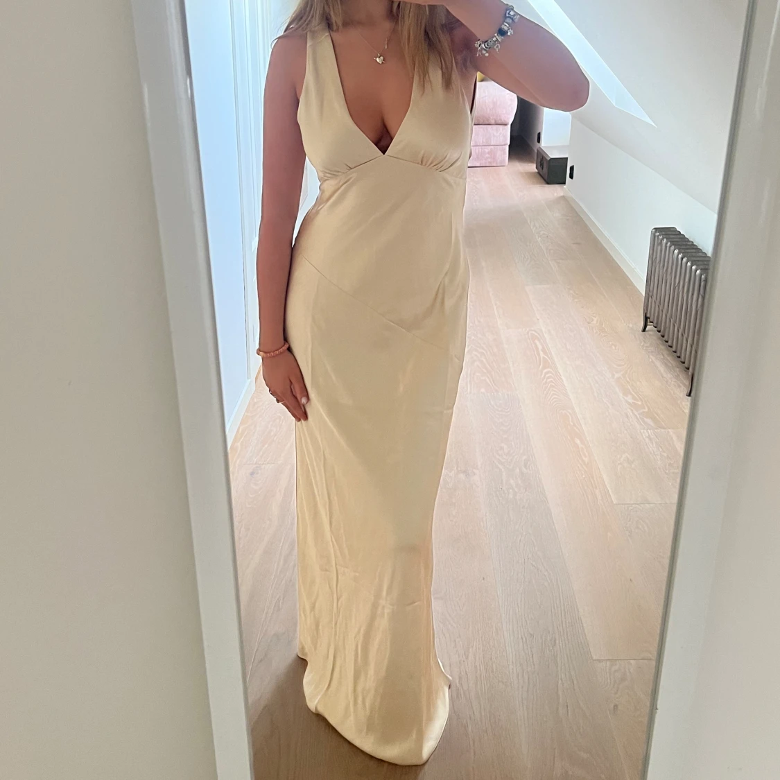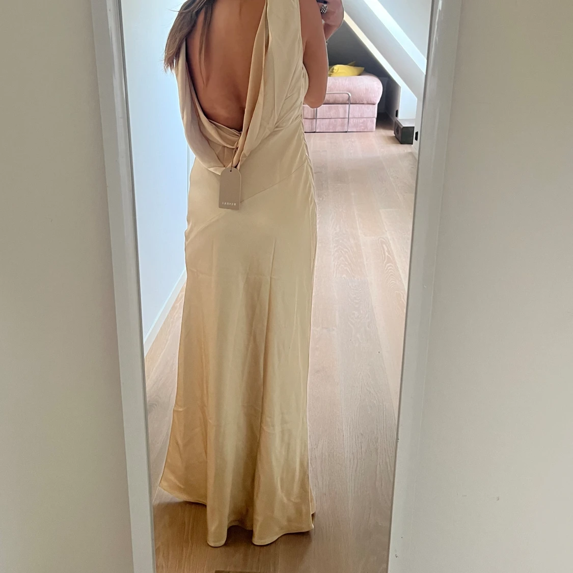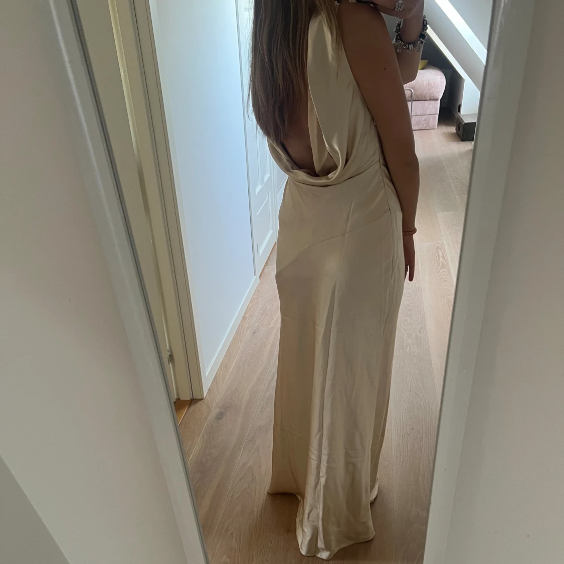 Säljer min meshki klänning i guld i modellen Nadia. Den är helt slutsåld i alla storlekar på hemsidan! Helt oanvänd då jag valde en annan balklänning! Den är satin och öppen i ryggen, nypris är 1200kr + tull och frakt som jag betalade ca 450kr för.