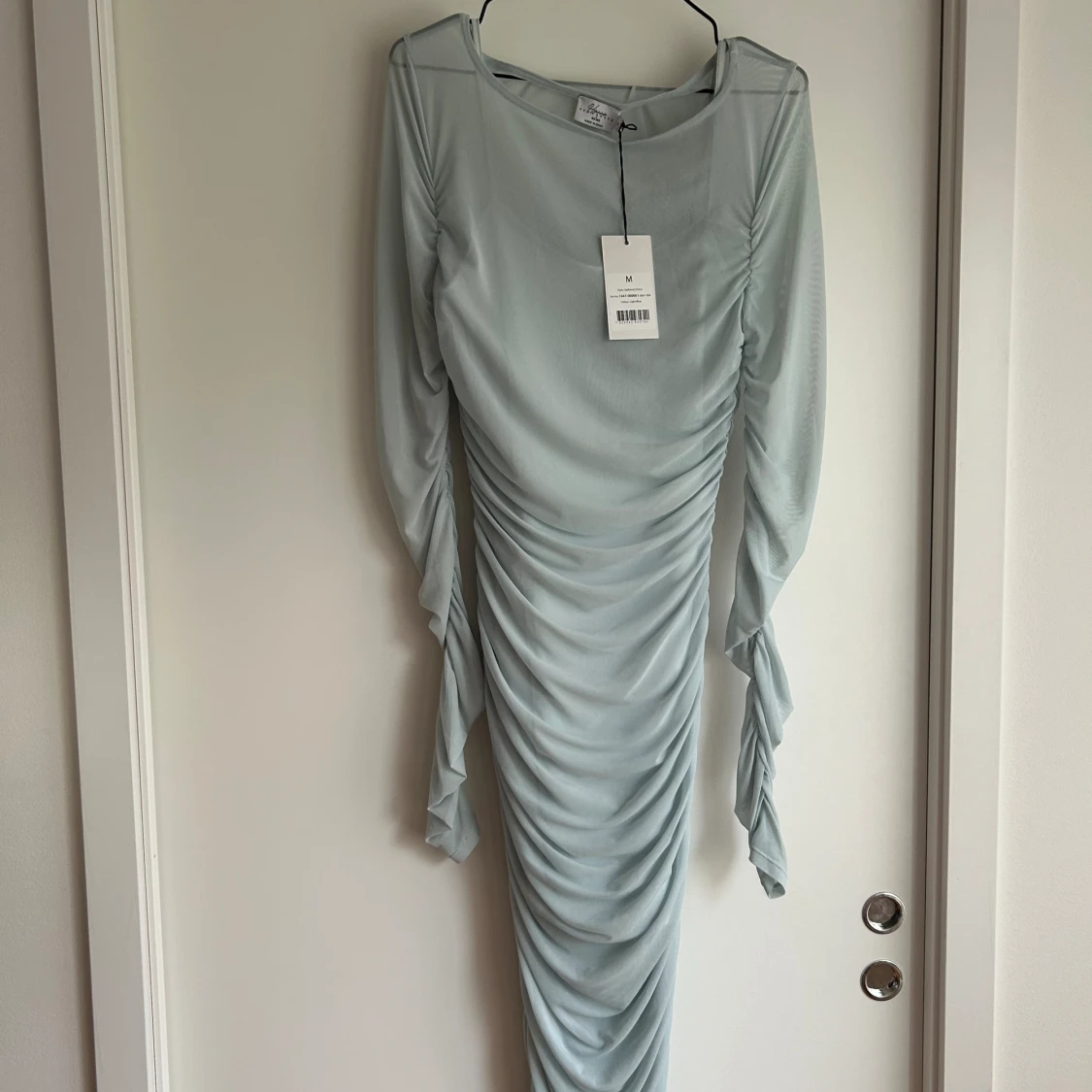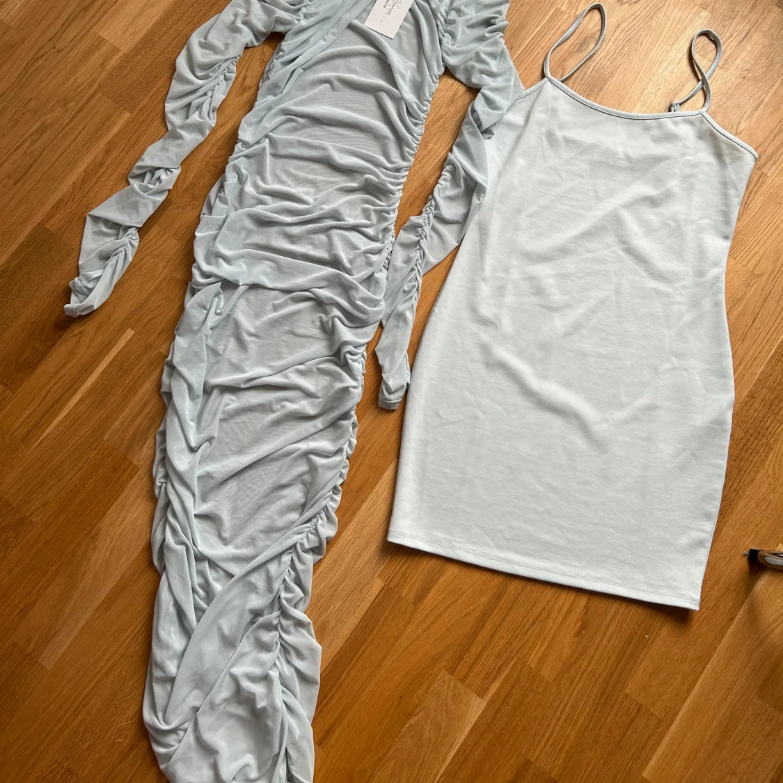 Aldrig använd, prislapp kvar. Underklänning är mini och axelband kan justeras. Meshklänning är väldigt stretchig och kan hamna olika långt upp/ner från person till person.