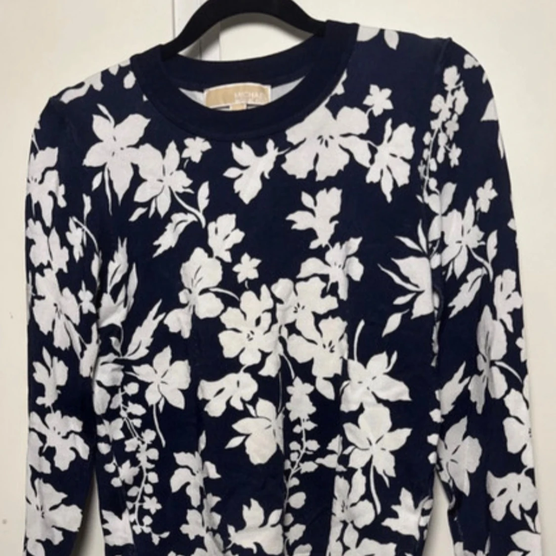 Supersnyggt marinblått set från Michael Kors med stora vita blommor över hela tyget. Långärmad modell med rund halsringning och rak passform. Perfekt för dig som vill sticka ut med ett fräscht blommönster och klassisk färgkombination.