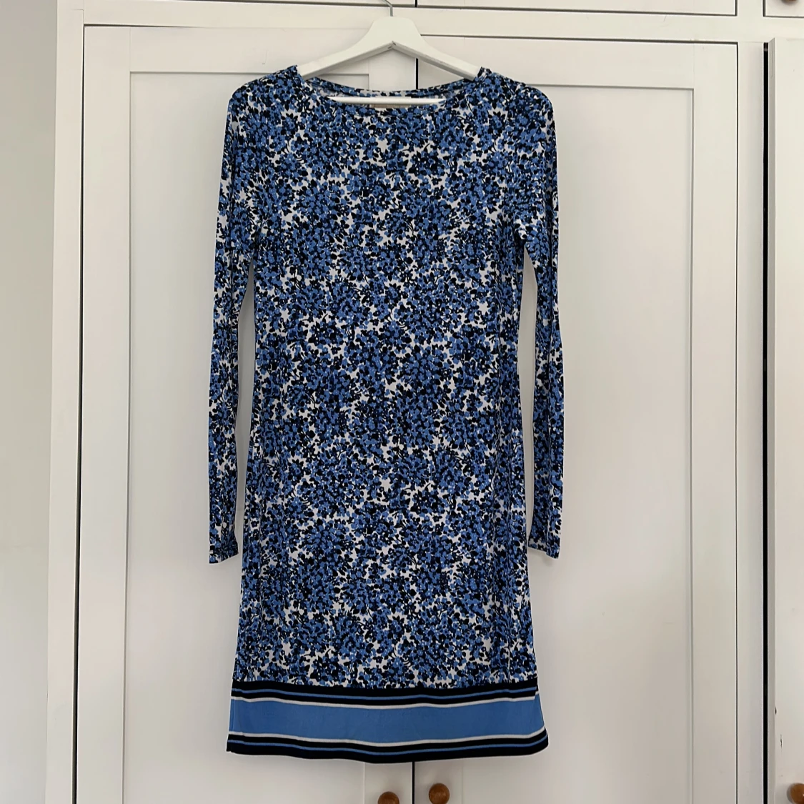 Längd 90 cm Storlek XS men funkar som Small också. Jättefina blåa toner.