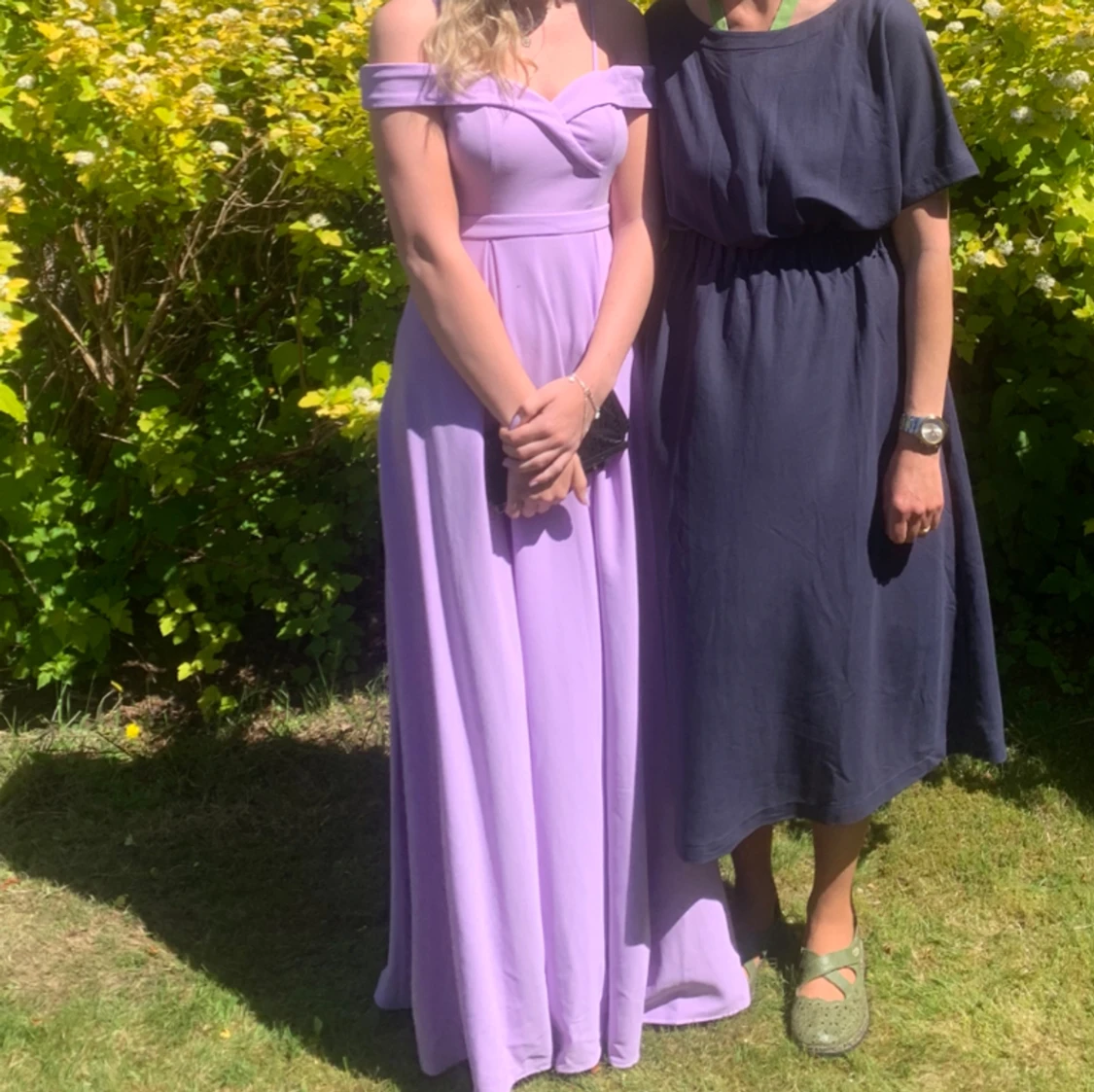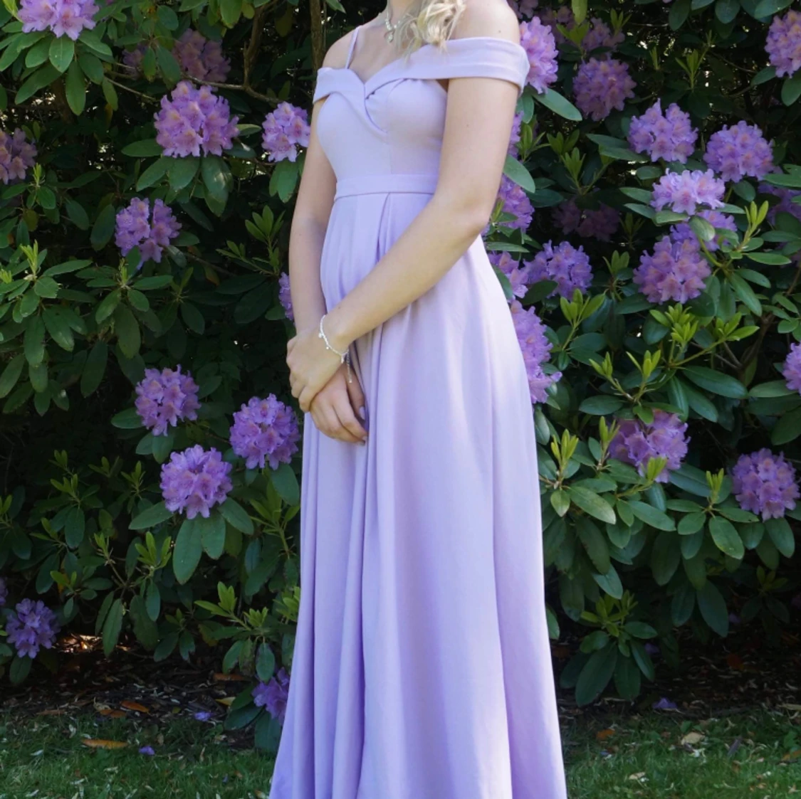 Balklänning köpt för 350kr💜 endast använd en gång på niornas middag! Skönt material och bra skick! storlek 34, XS. Jag är 168cm lång🌟 Pris går att diskuteras! Kan mötas upp💜