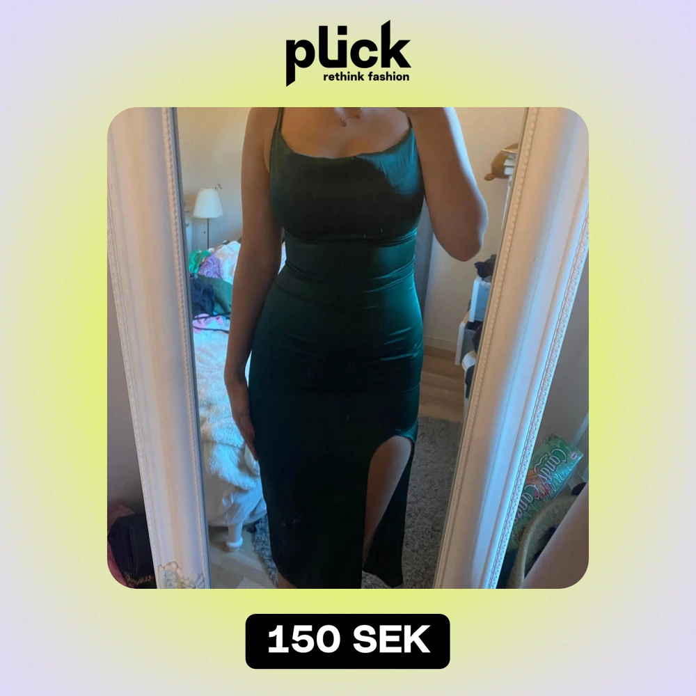 Snygg grön satinklänning från PrettyLittleThing i storlek 34. Den har en ”waterfall” effekt vid bysten och en slits vid sidan. Aldrig använd❤️