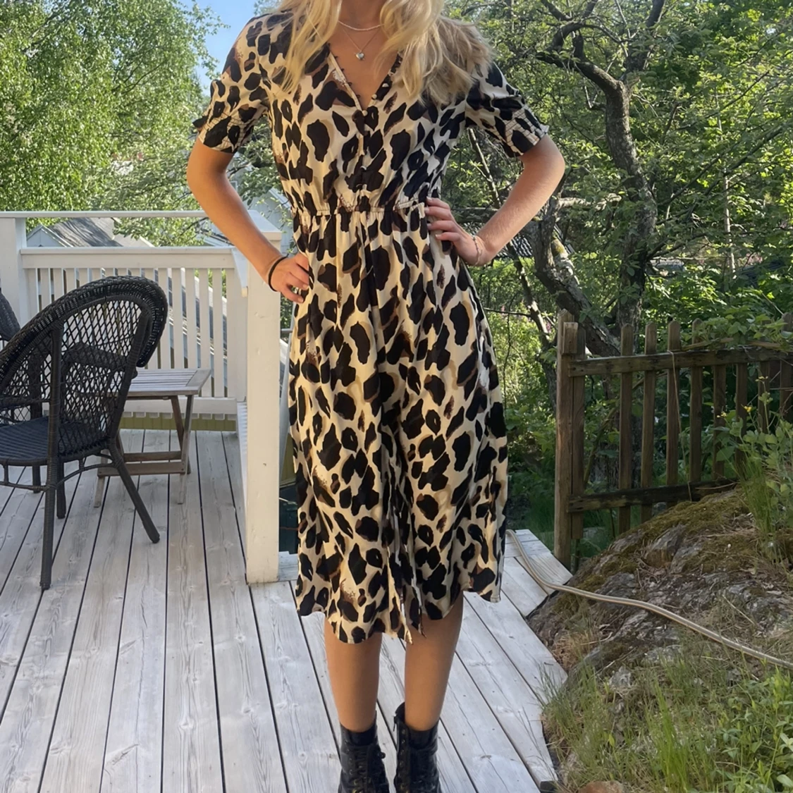 Så fin leopardklänning, aldrig använd men utan prislapp! Den är från märket influence och i storlek36! Jag är 175 cm och brukar ha s/36!❤️😍💓