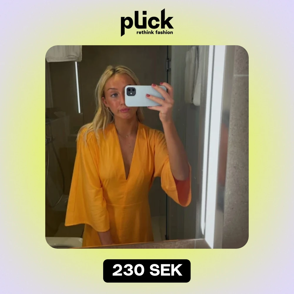 En orange Midi/Maxi klänning. Använd vid 2 tillfällen och kvaliteten är som ny. Skulle rekommendera att skriva privat så får du video på hur den ser ut då den är svår att visa bra i bilder! Inte genomskinlig🤍