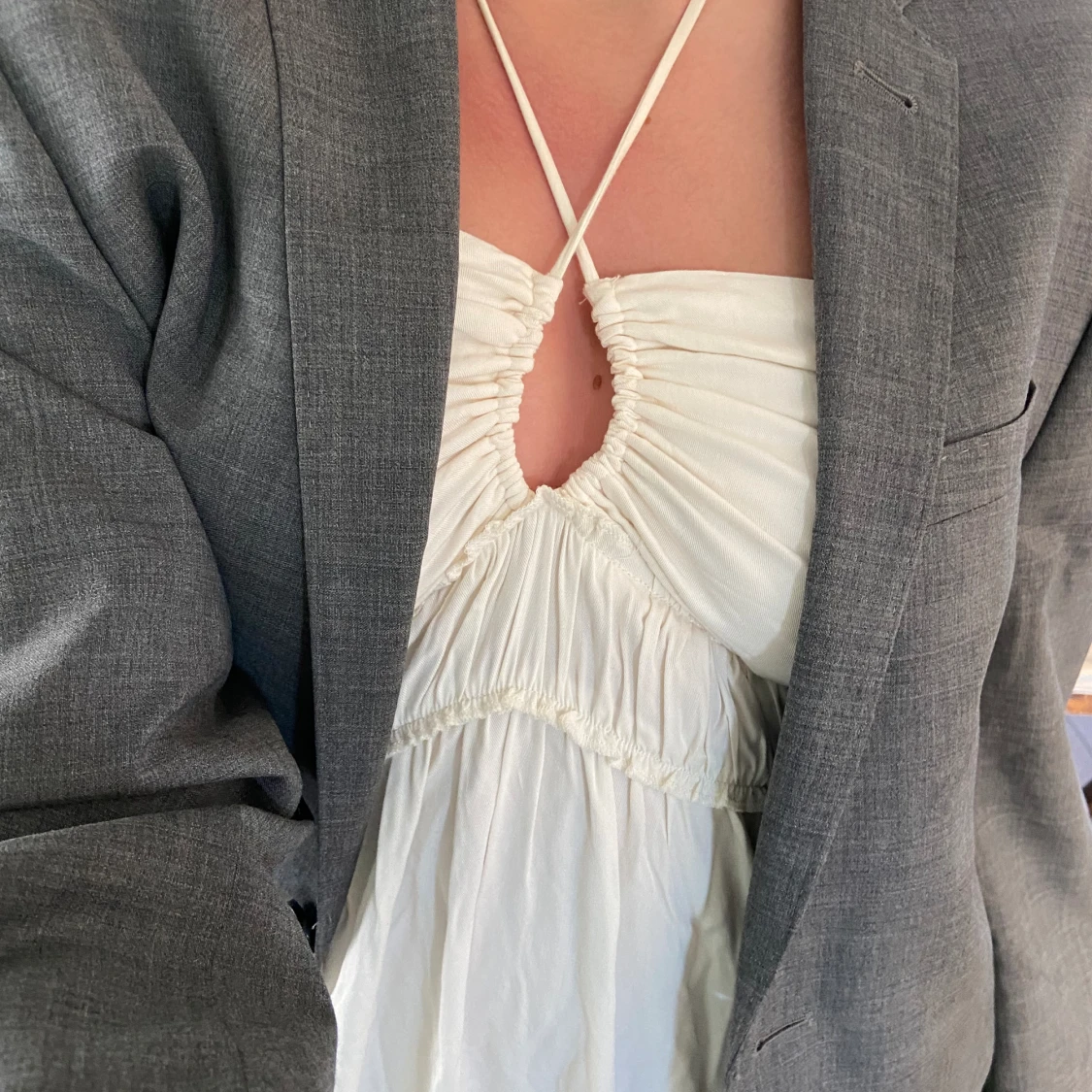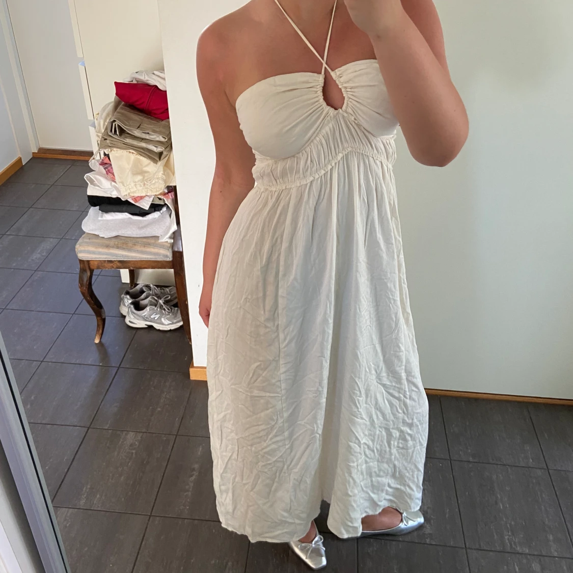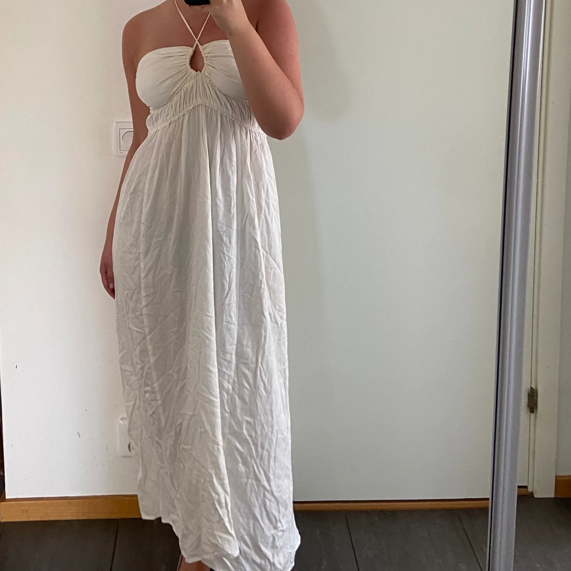 Säljer denna vita sommarklänning från H&M i storlek M/38. Den är endast använd ett fåtal gånger & är i mycket bra skick - utan några defekter. Pris kan diskuteras - kom med prisförslag eller köp direkt för 150kr Om du har övriga frågor hmu!