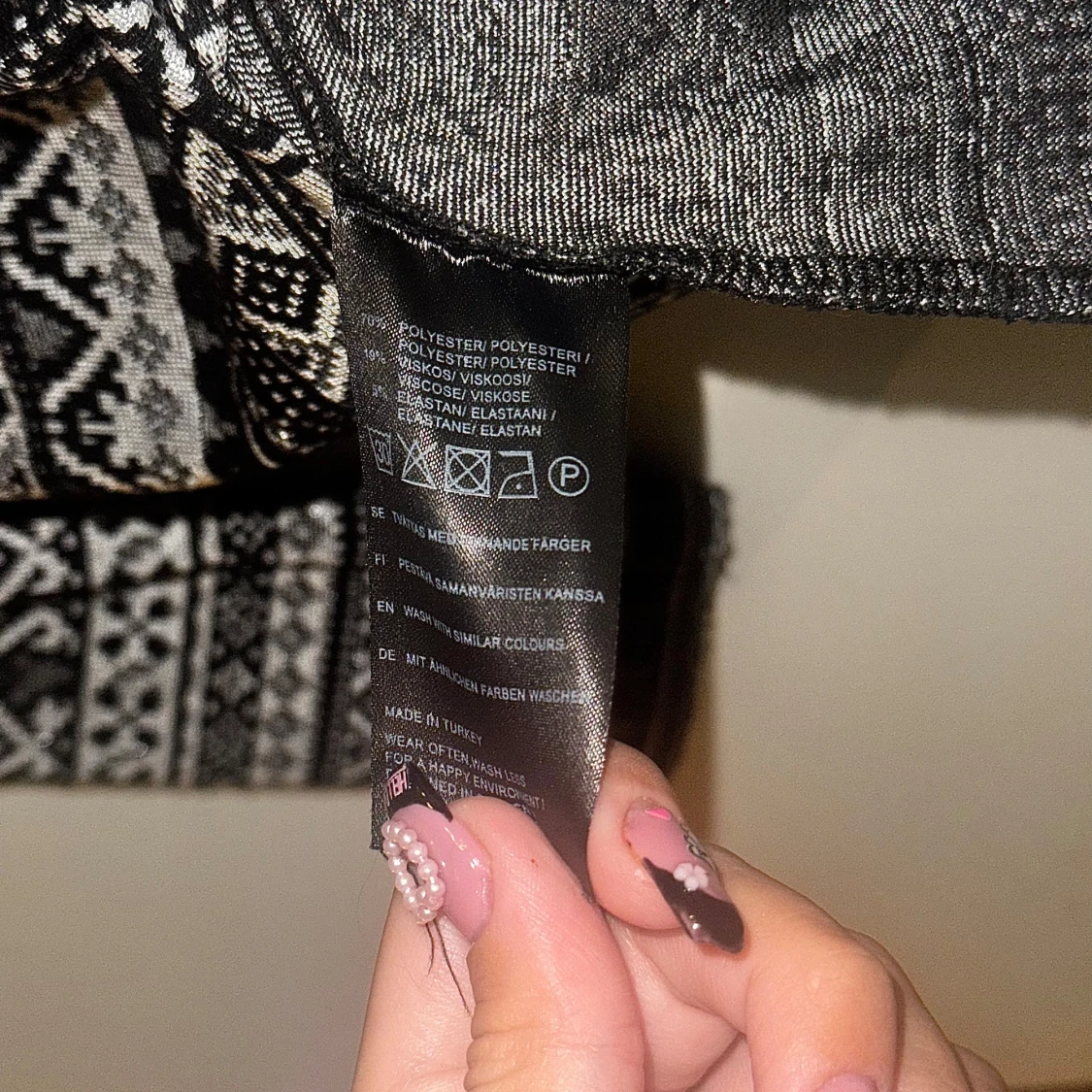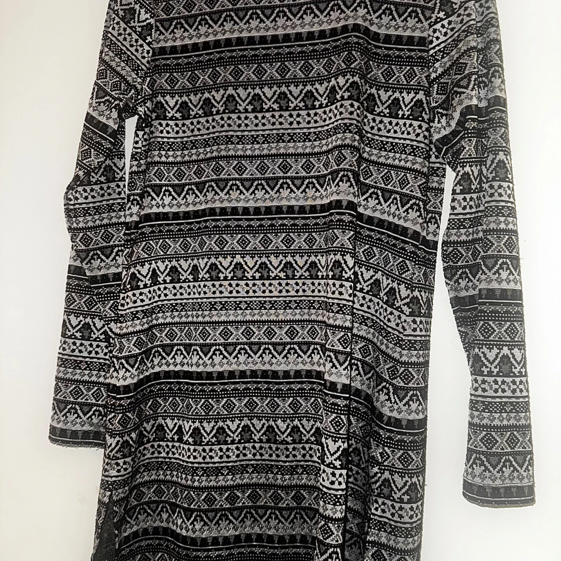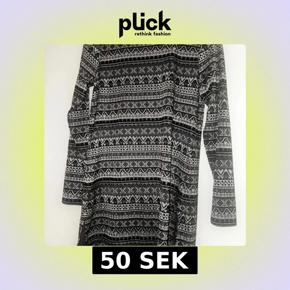 Svartvit klänning från Bik Bok med grafiskt mönster i olika geometriska former. Långärmad och i mjukt material med inslag av polyester, viskos och elastan. Perfekt för dig som gillar en stilren men ändå unik look.