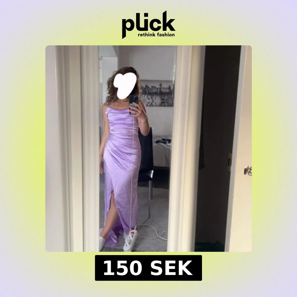 Säljer en elegant ljuslila klänning med slits framtill. Klänningen har en smickrande passform och är perfekt för speciella tillfällen. Materialet ger en fin glans och faller vackert. Använd en gång på niornas bal.