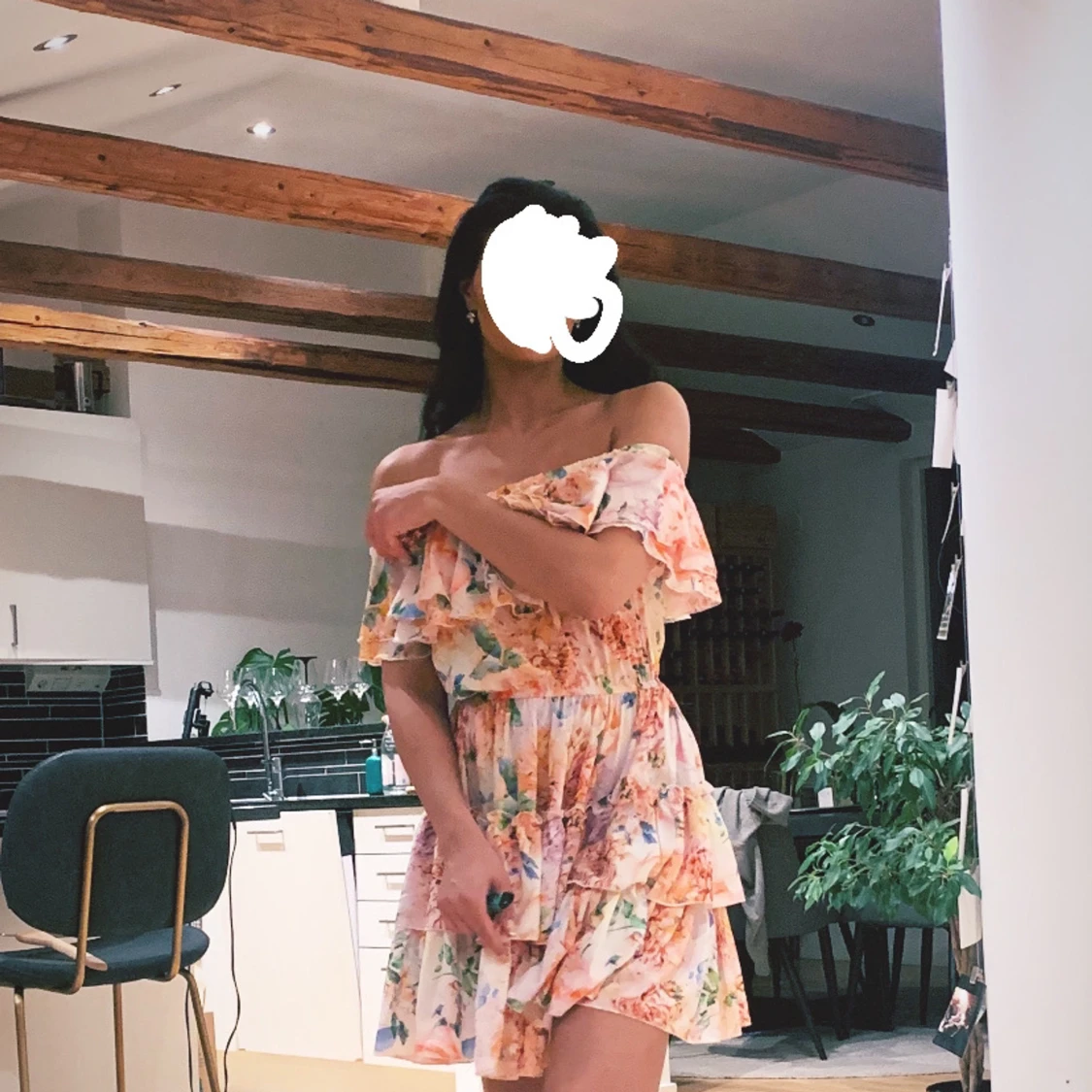 🌼🌸En jättefin sommarklänning köpt från en butique i Marbella. Använd en gång under midsommar. Klänning är jättefin med skärp i midjan med kan även ha ärmarna uppe eller nere. Väldigt mjukt & ”lyxigt material. 🌺🌼