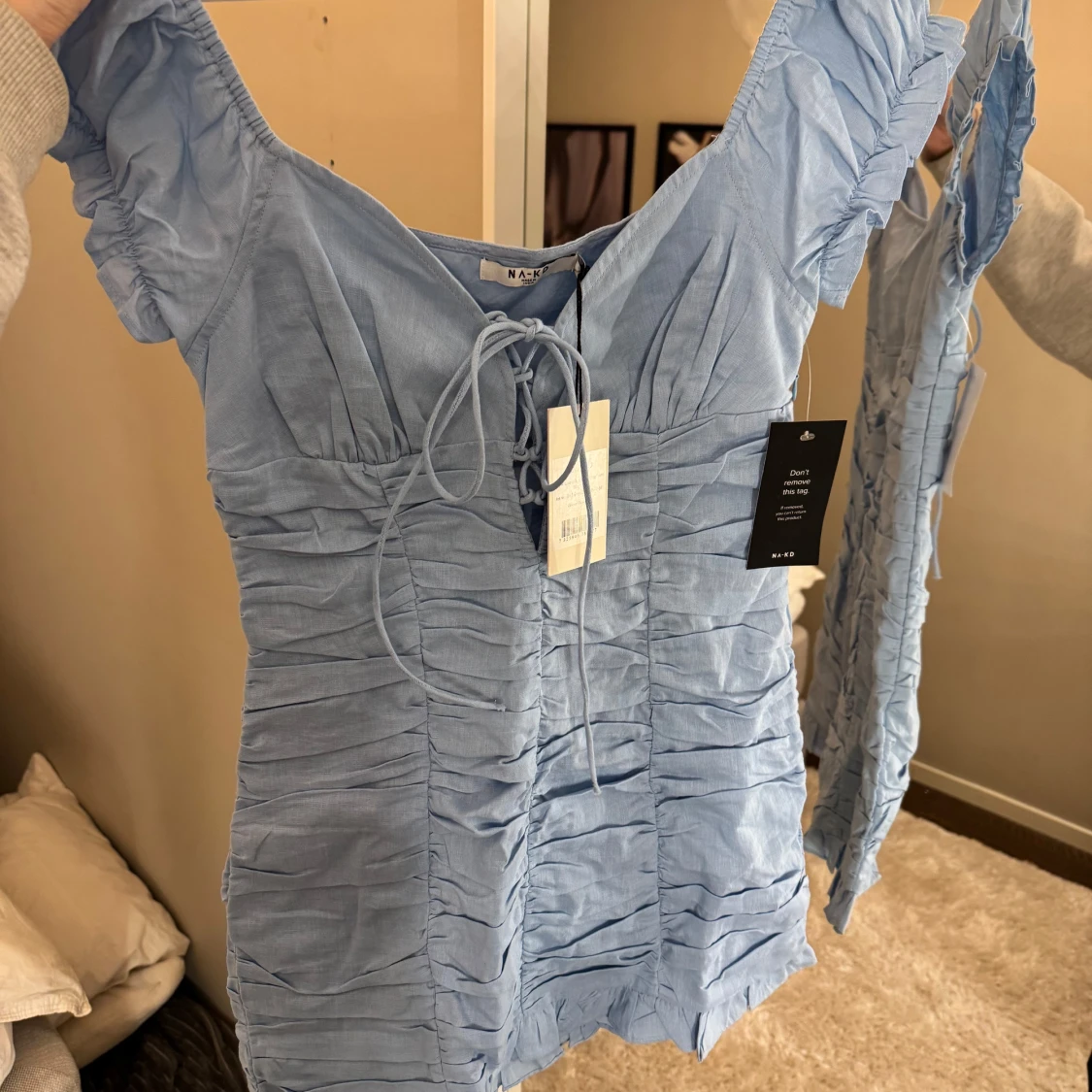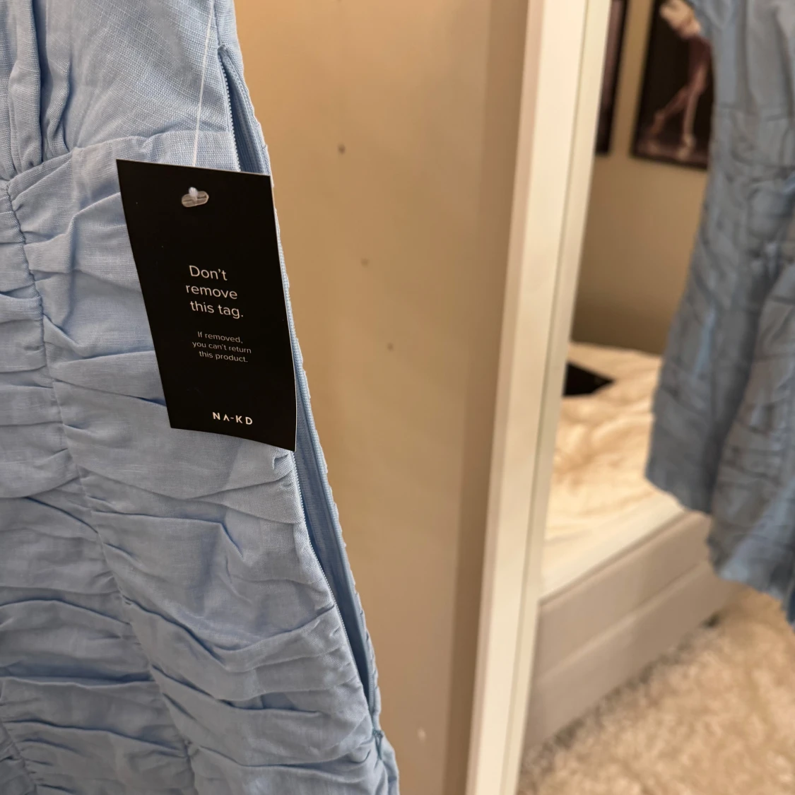 Ljusblå klänning från NA-KD som aldrig är använd. Perfekt till midsommar eller student mottagning. Storlek S
