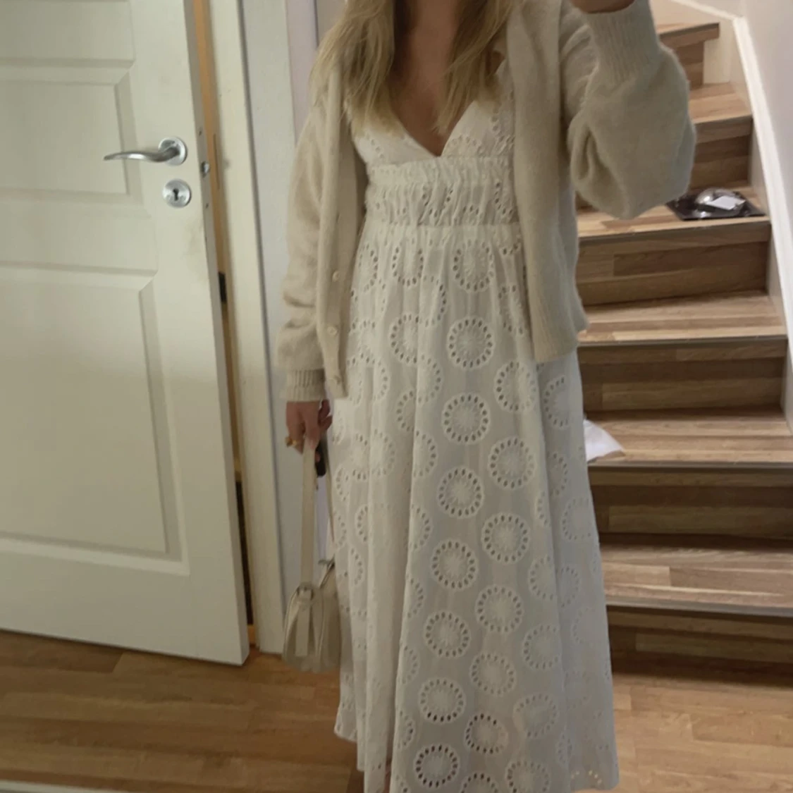 Säljer denna vita långklänningen med broderier från zara. Endast använd en gång på skolavslutningen.🤩❤️❤️