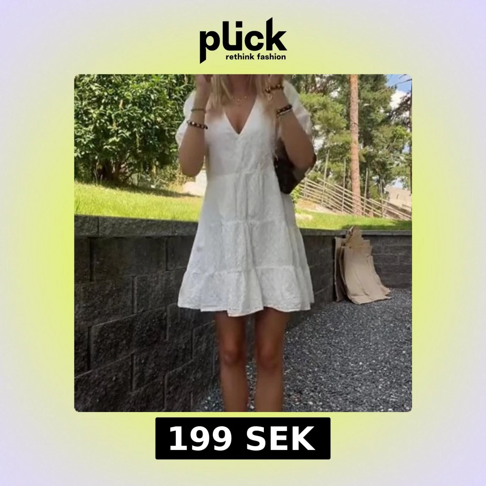 Såå fin vit v-ringad kortärmad klänning från zara med hålbroderier i jättebra skick! Två första bilderna är lånade. Ganska liten i storleken enligt mig