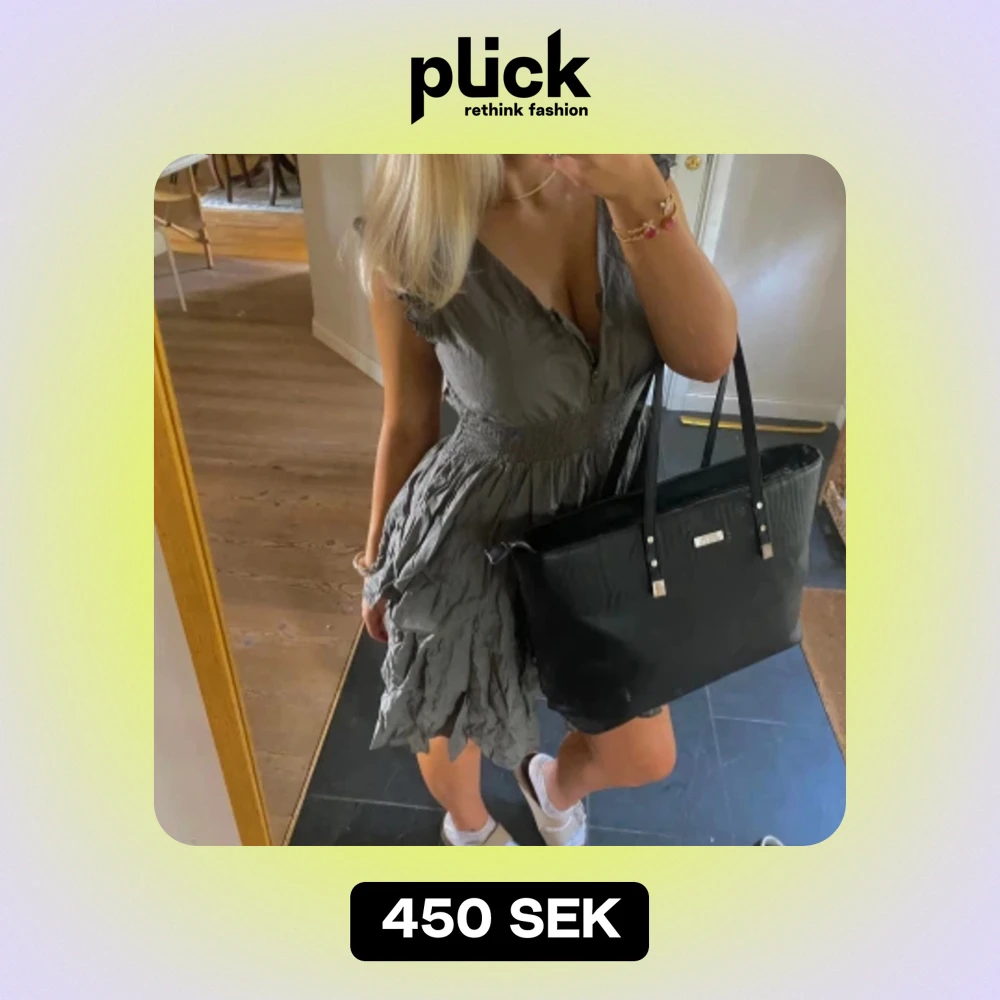 så fin och skön volangklänning i en underbar grågrön färg💚🫶🏼✨storlek 40 men passar mig som har S