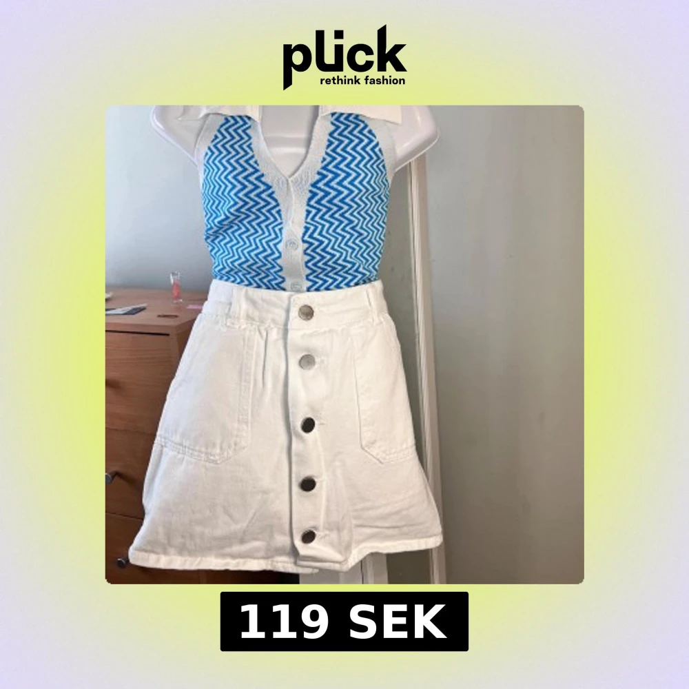 Set Vit och blå halter top med zigzag-mönster och jeans kjol med byxor under