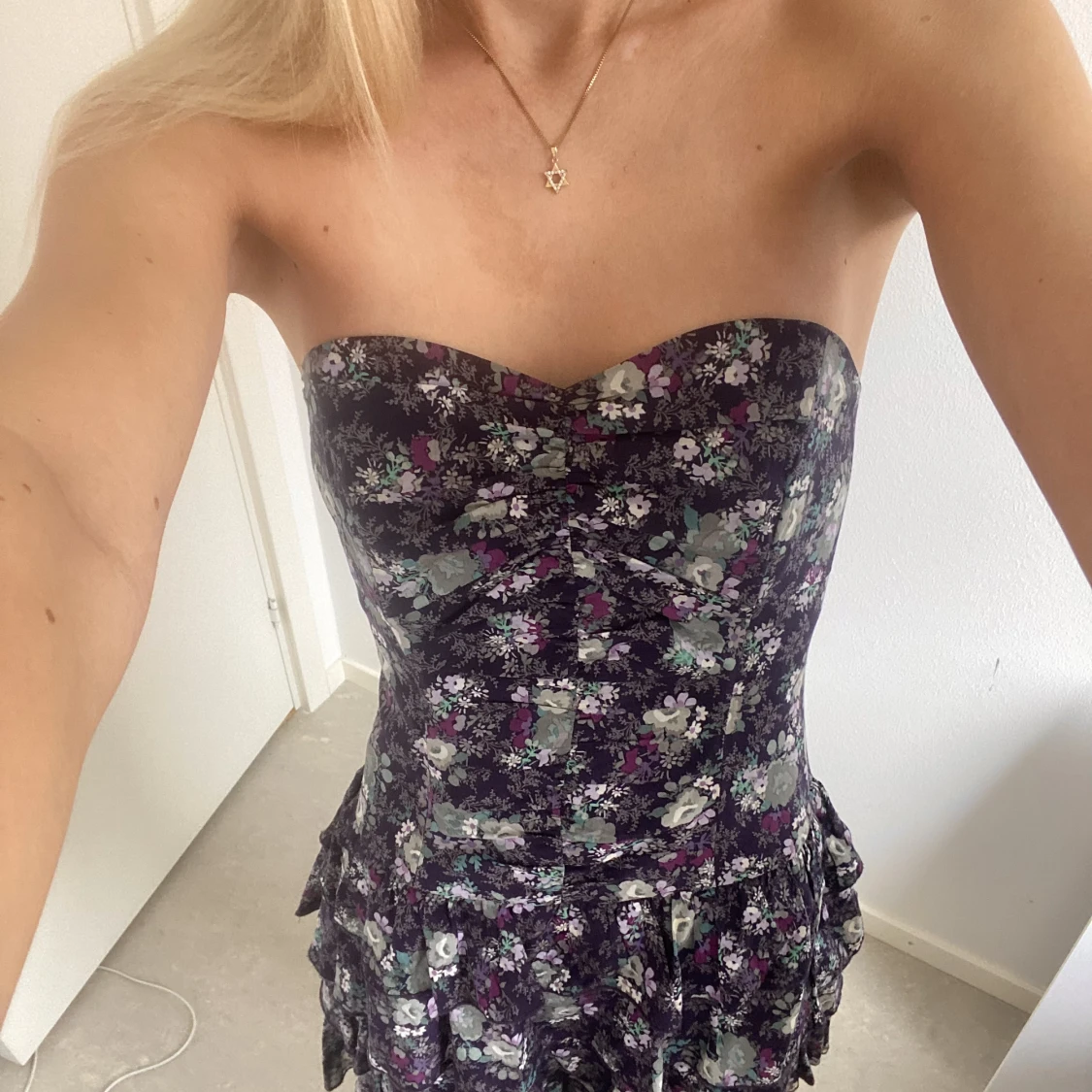 Söt bandeau klänning med volanger nedtill och resår i ryggen💜