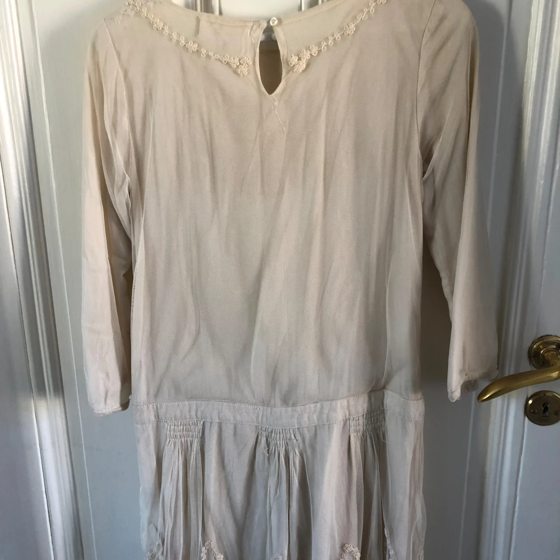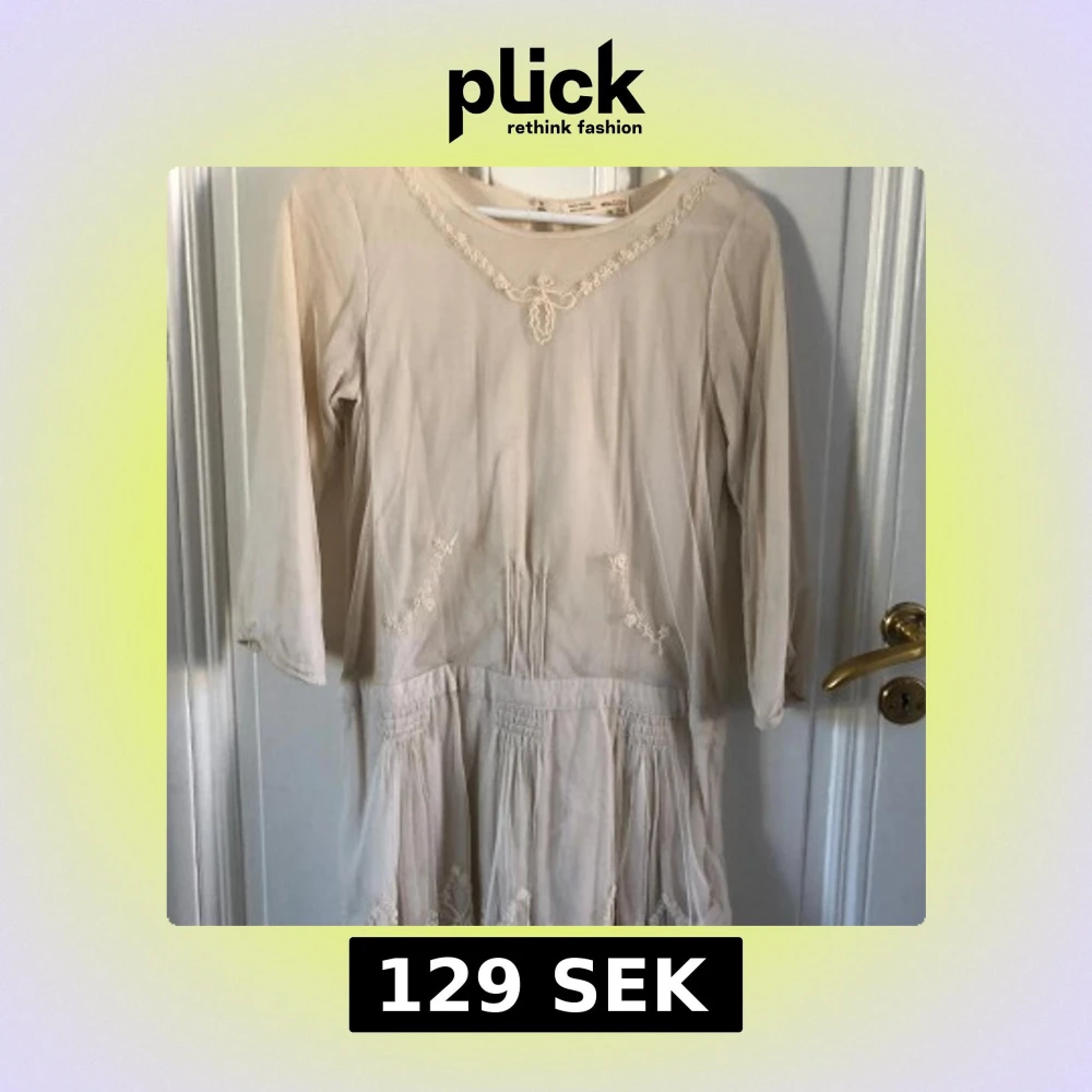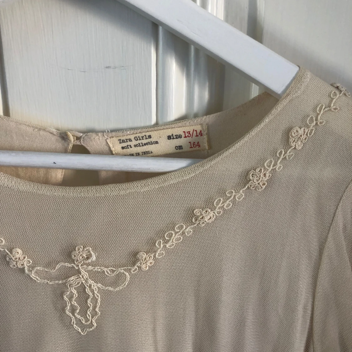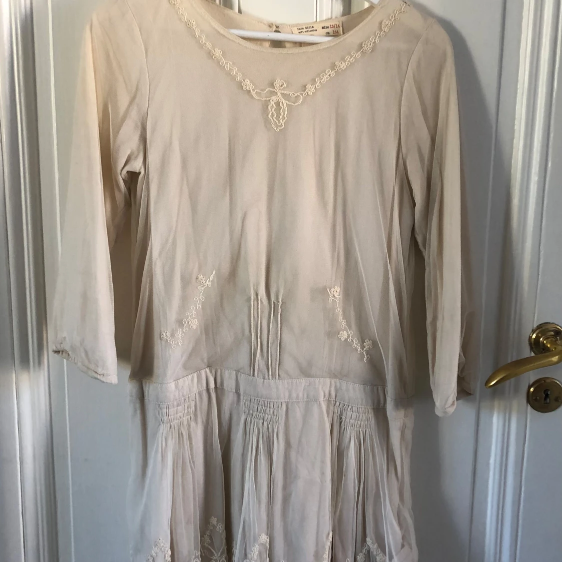 Fin bohemisk klänning från Zara Girls med broderade spetsdetaljer vid halsringning och nederkant. Mycket bra skick.