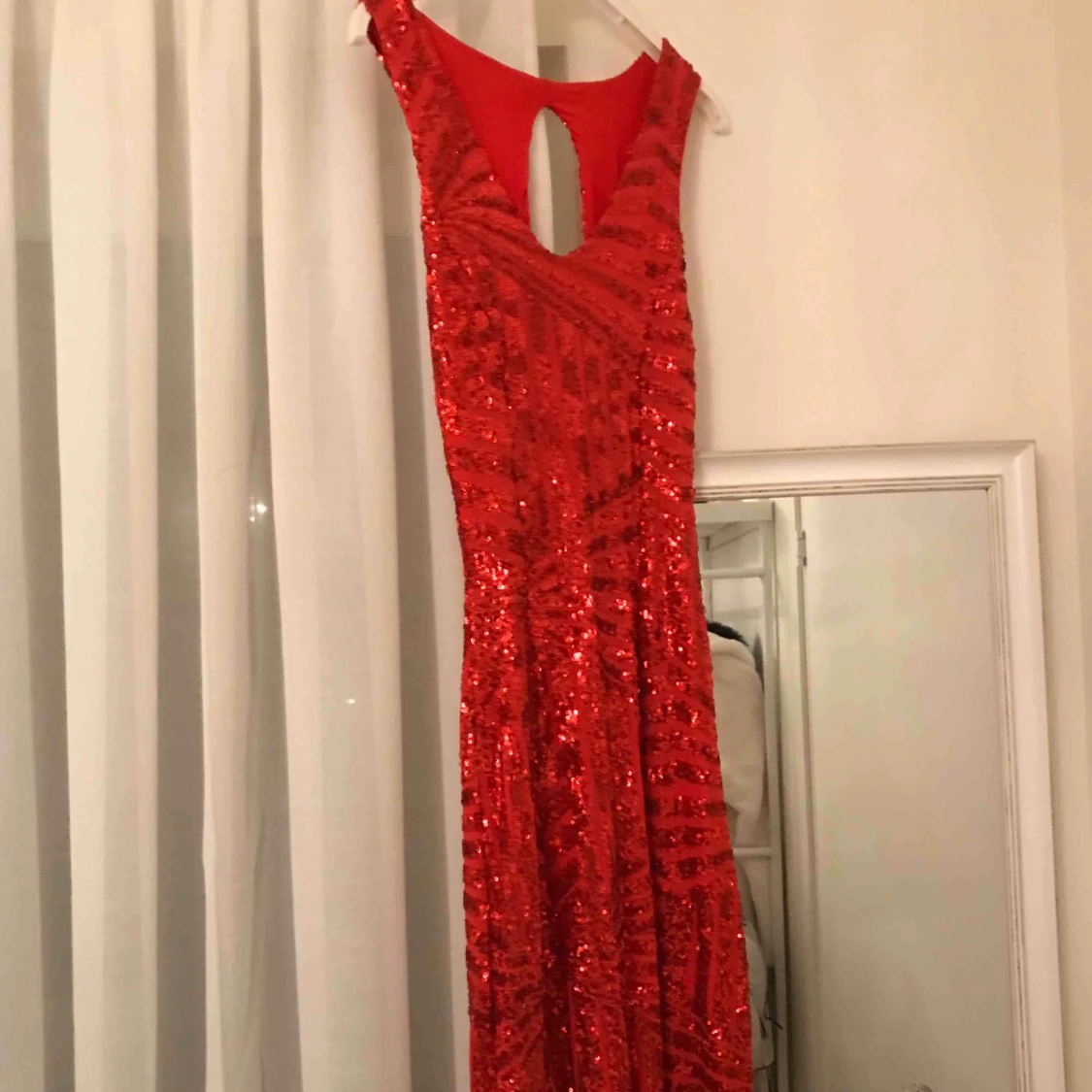 Lång röd klänning med öppet ben.