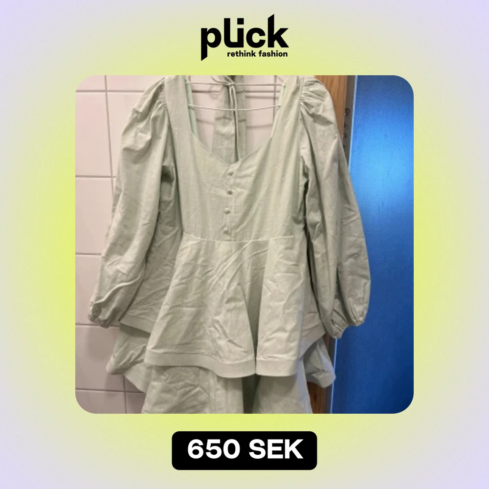 Mintgrön klänning från Nalina, är lite längre bak så räcker väl! Även lite tyngd i klänningen på volangerna för att den inte ska flyga upp! Helt ny och slutsåld