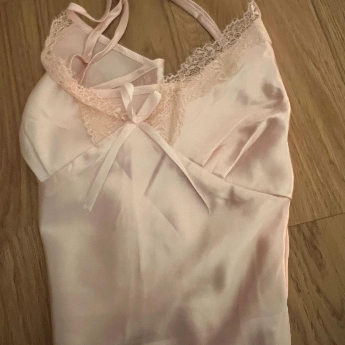 Supersöt pyjamas set i rosa satin från missäy, aldrig använd! Den är i storlek xs/s o fungerar även som xxs