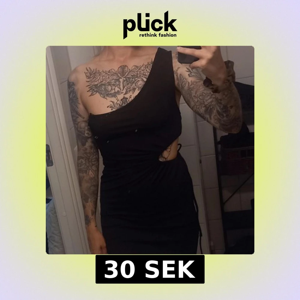 Säljer en svart kortklänning med oneshoulder-design och snygg cut-out på sidan. Klänningen har en tight passform och cool snörningsdetalj i midjan. Perfekt för dig som vill sticka ut med en edgy och modern look.