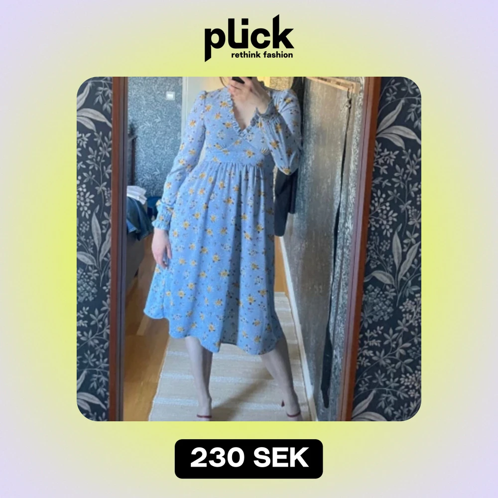 🐚Blommig klänning från Monki 🐚Inga defekter - bara använt ca tre gånger 🐚Madicken-vibes???? Romantisk 🐚Tyvärr för liten för mig - midjan hamnar för långt upp på bröstkorgen på mig (177 cm lång) 🐚97 % polyester 3 % elastan