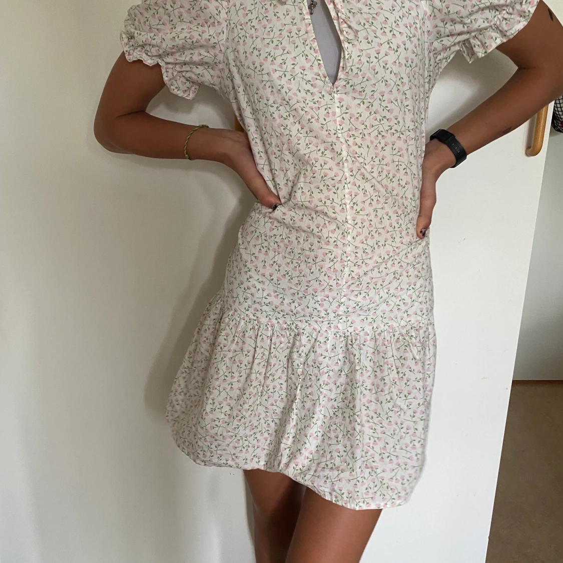 Vit klänning med rosa blommor från monki i storlek xs. Knappt använd.