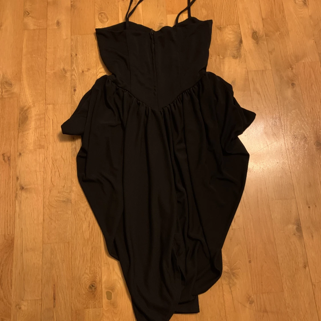 Svart klänning från Monki som är längre i mitten. Aldrig använd så är som ny. Skriv privat för fler bilder.