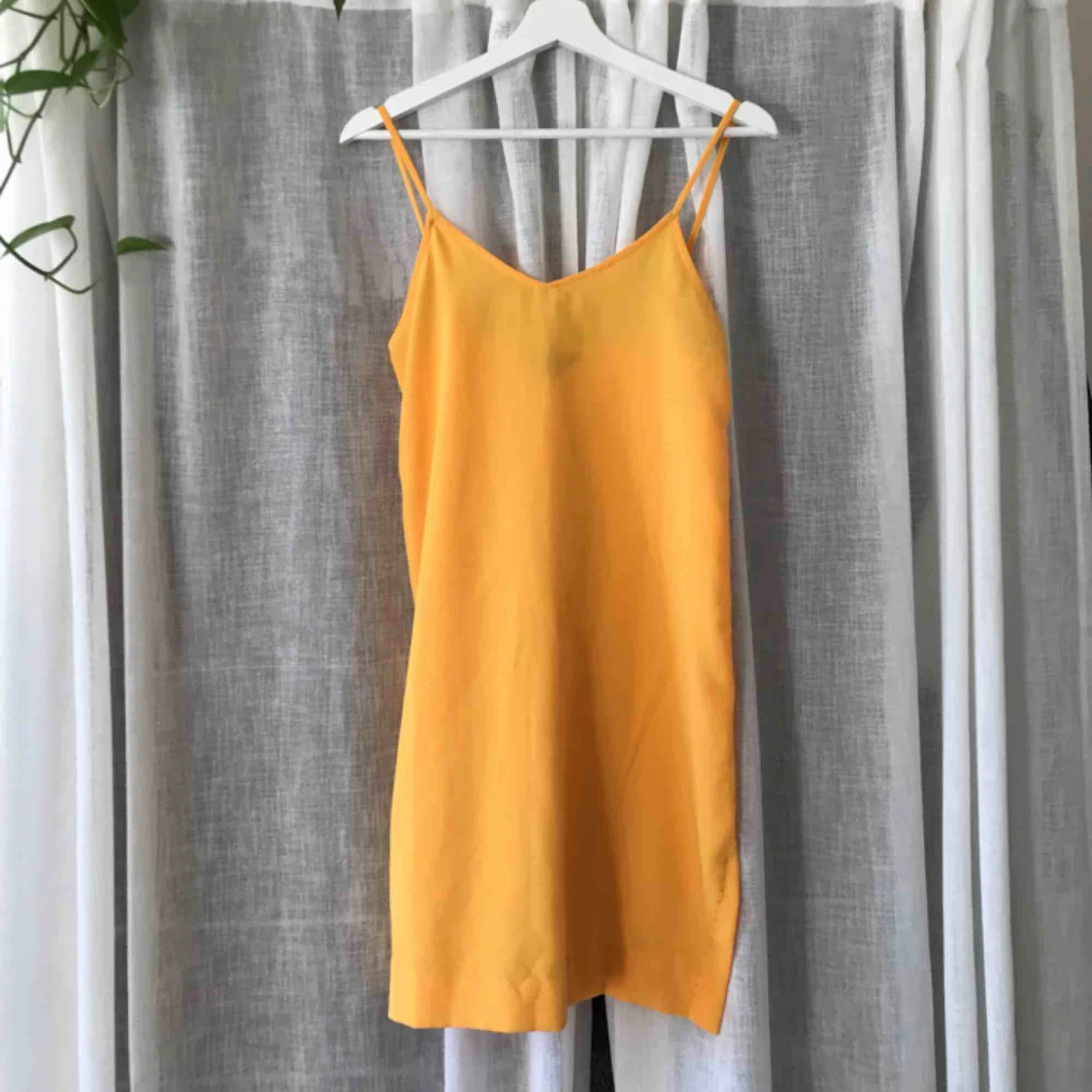 Gul klänning från Monki. Den var lång först men jah sydde in den, så nu är den typ halvvägs till låren. För liten för mig vid brösten. Använd typ 2 ggr.