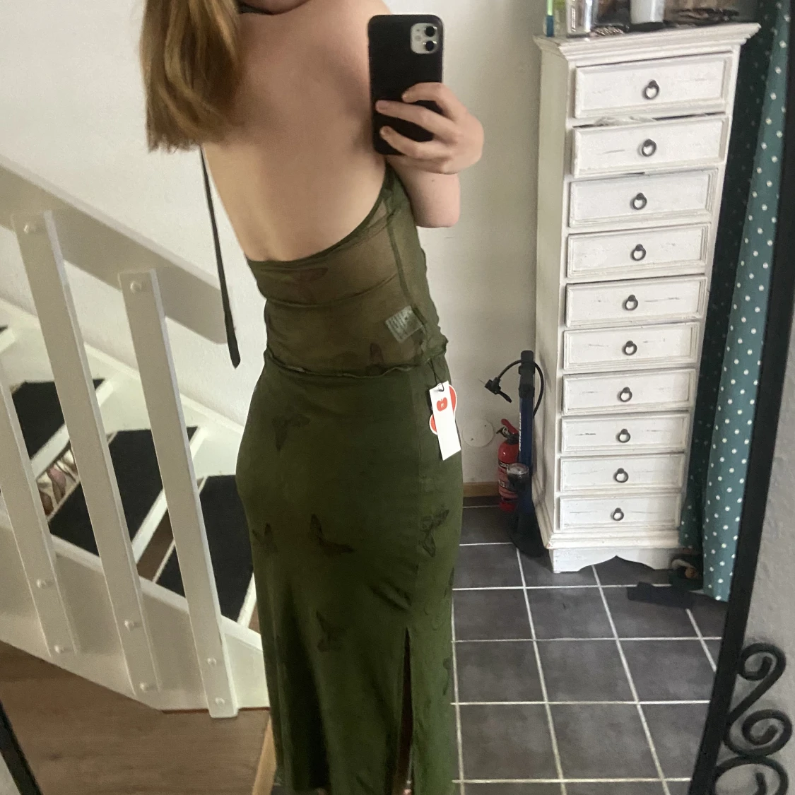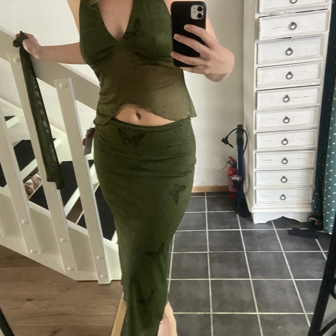 Ett as gulligt set med mesh tyg. Aldrig använt endast testat, man får även med en liten sjal. Skulle säga att den passar S/M💘 200kr för båda delarna pris går att diskutera vid snabb affär. Tryck gärna på köp nu