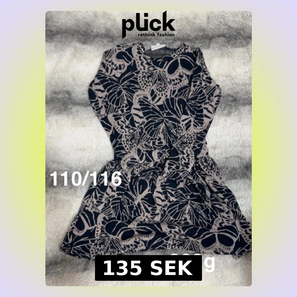 Kortklänning med blått och beige lövmönster. Klänningen har lång ärm, rund halsringning. Perfekt för dig som gillar unika mönster och sköna plagg.🌸 Fint använt skick. Storlek 110/116