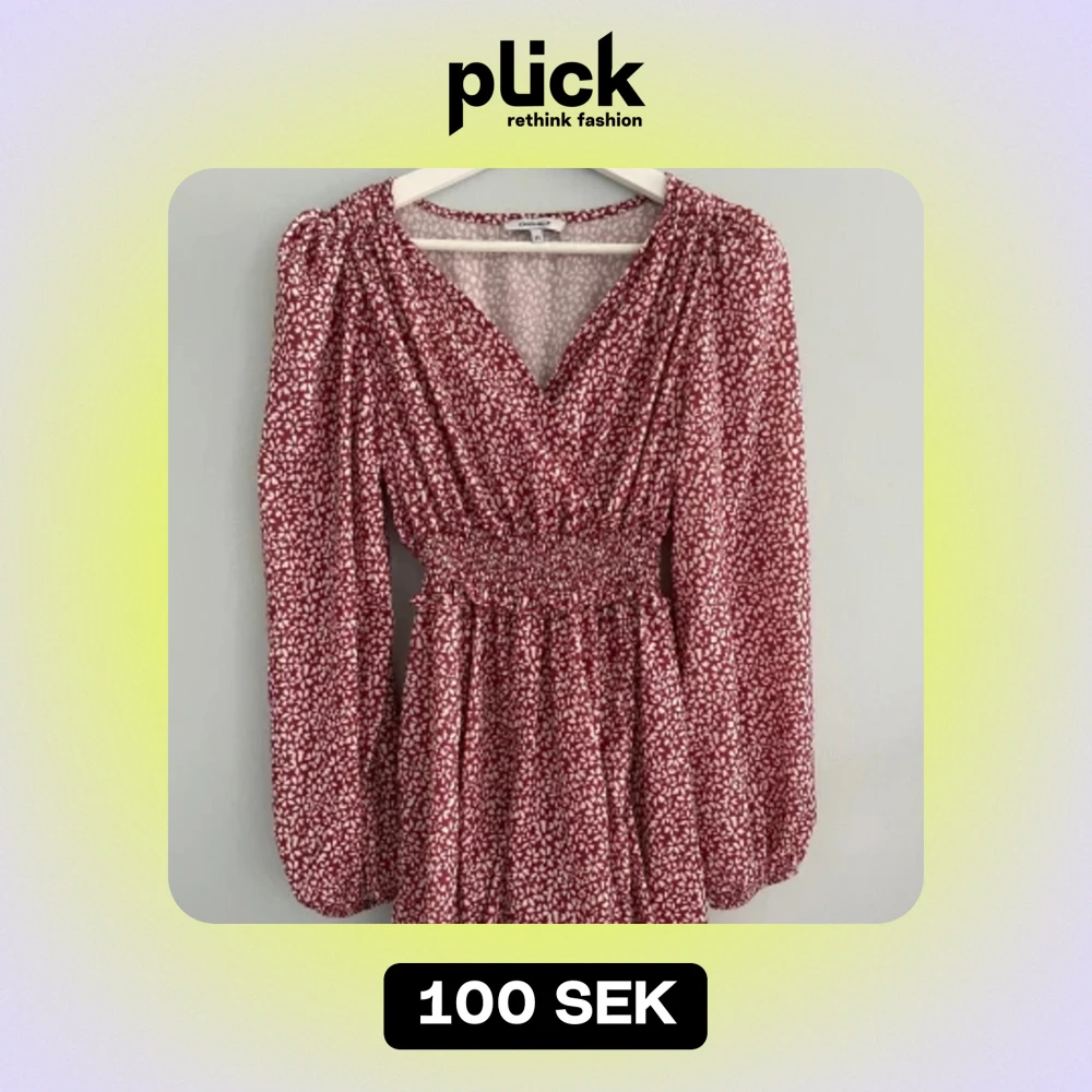 Vinröd och vit mönstrad klänning med v-ringning. Klänningen är knälång. Endast använd en gång❤️🔥