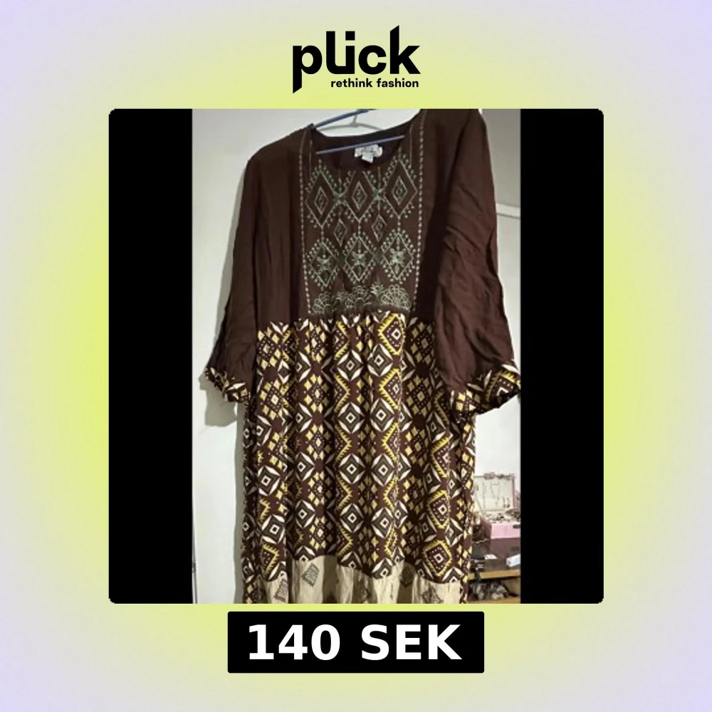 Säljer en unik klänning med geometriskt mönster i brunt, gult och beige. Supersnygg och oanvänd