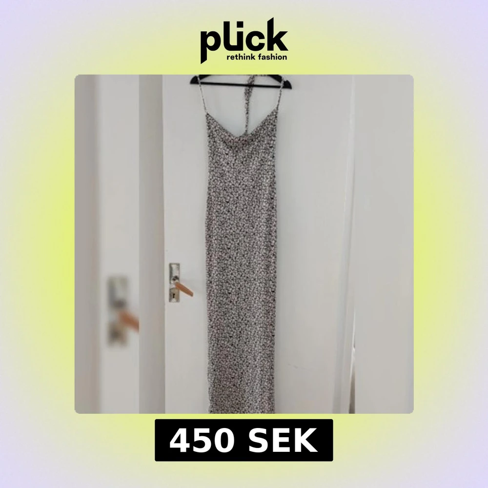 Säljer en långklänning med svartvitt grafiskt mönster från I Saw It First. Klänningen har smala axelband och öppen rygg.