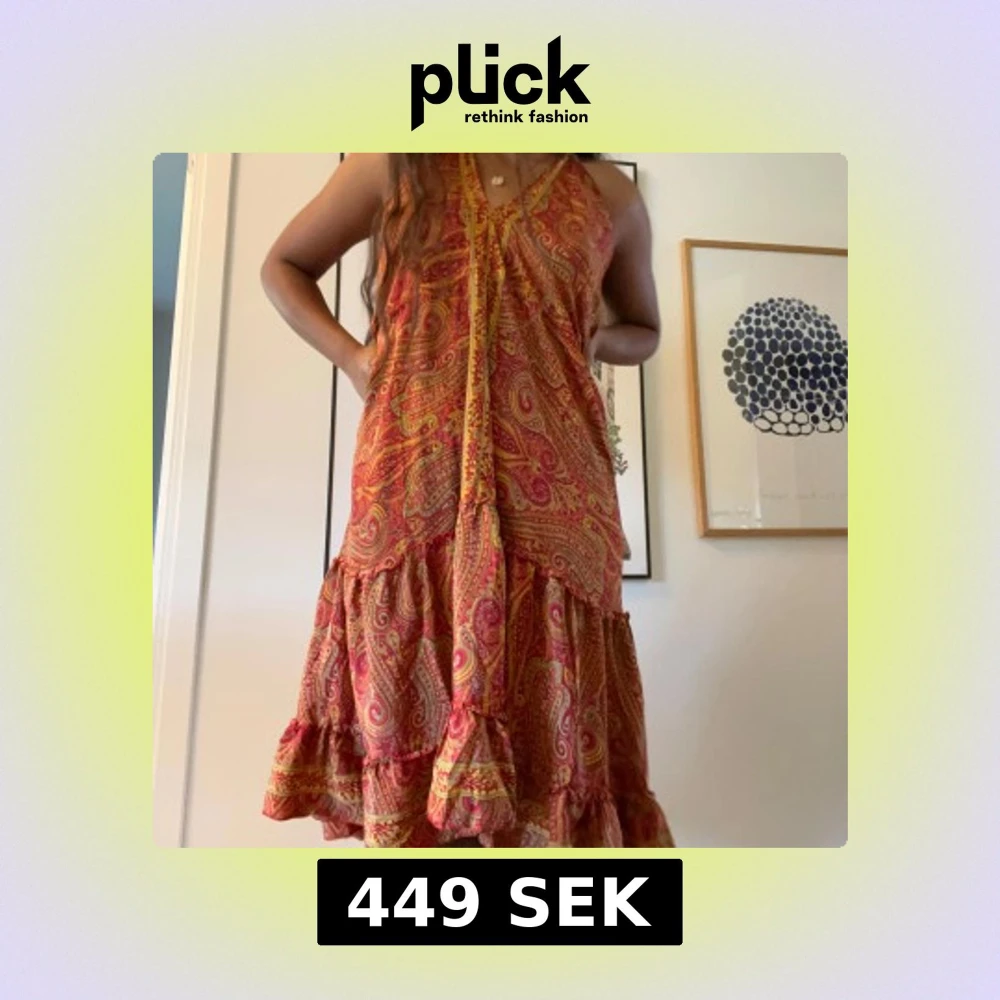 Superfin långklänning i skönt silkesliknande material, köpt i Rom!😚justerbar när det gäller storleken då den knyts i ryggen (det är onesize)❤️