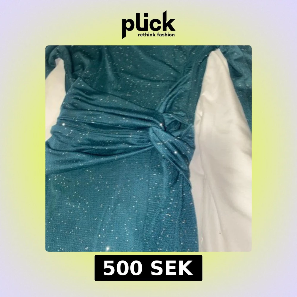 Snygg mörkgrön långklänning med glittriga detaljer och lång ärm. Klänningen har en twistad detalj i midjan och en slits nertill för extra vibe. Perfekt för dig som vill sticka ut med lite extra glitter och glam.