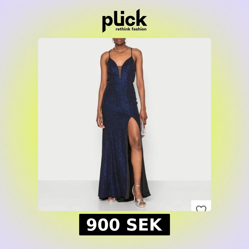 Mörkblå balklänning, öppen i ryggen. Använt 1 gång köpt för 2200