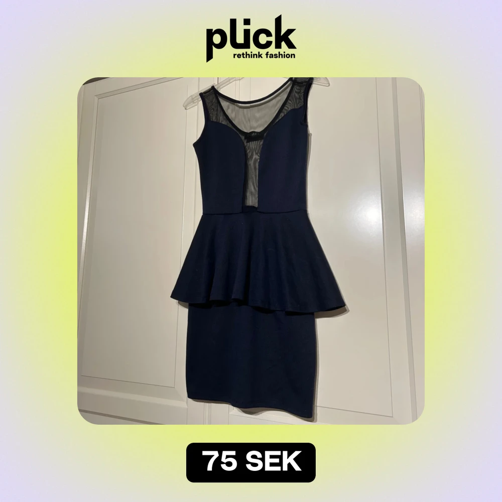 Snygg mörkblå klänning från Club L i strl S med transparent mesh upptill och en peplumdetalj i midjan. Perfekt för festliga tillfällen! Klänningenn har en tight passform som framhäver figuren. Materialet känns bekvämt och stretchigt.