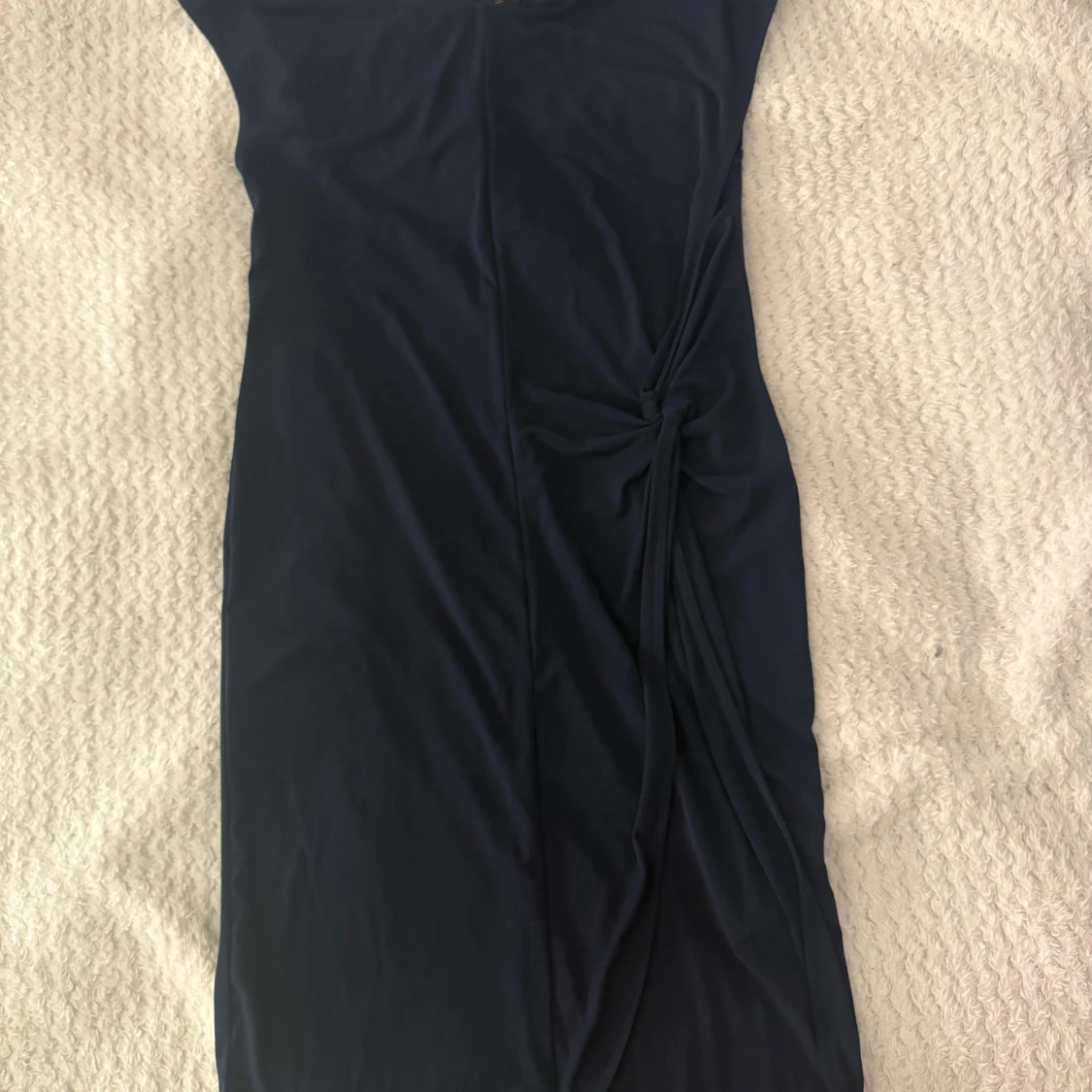 Snygg mörkblå klänning från Vero Moda i figurnära modell. Klänningen har kort längd, draperad detalj i sidan och dragkedja bak. Perfekt för dig som gillar stilrena och enkla plagg med en twist. Materialet känns mjukt och följsamt.