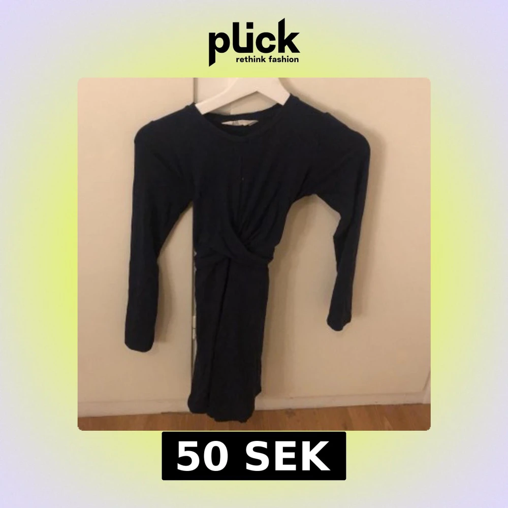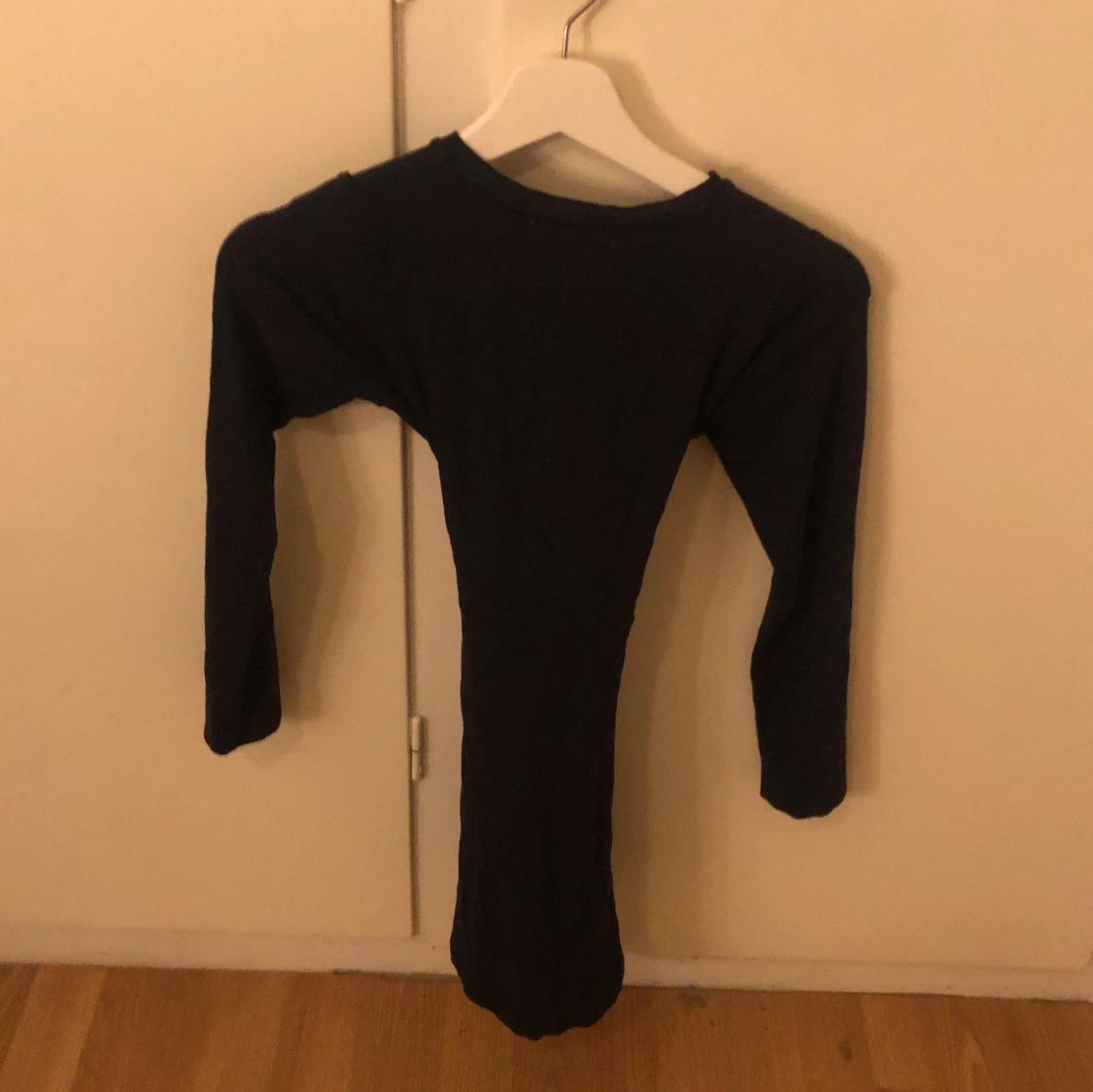 Snygg mörkblå klänning med lång ärm och rund hals. Perfekt för kyligare dagar och kan stylas upp eller ner beroende på tillfälle.