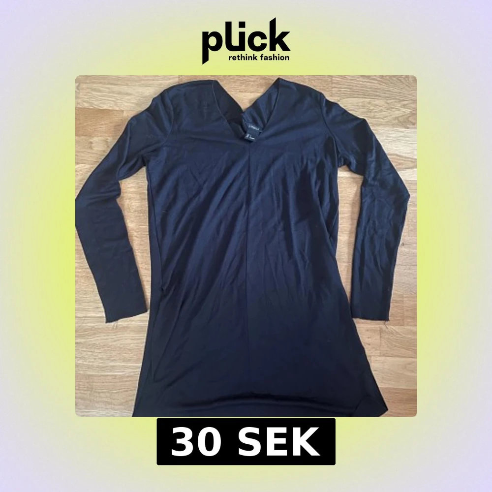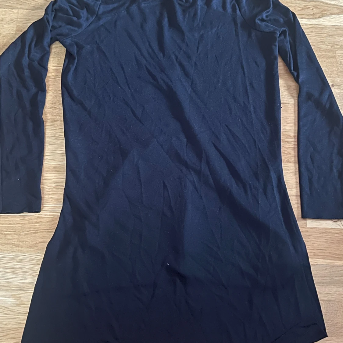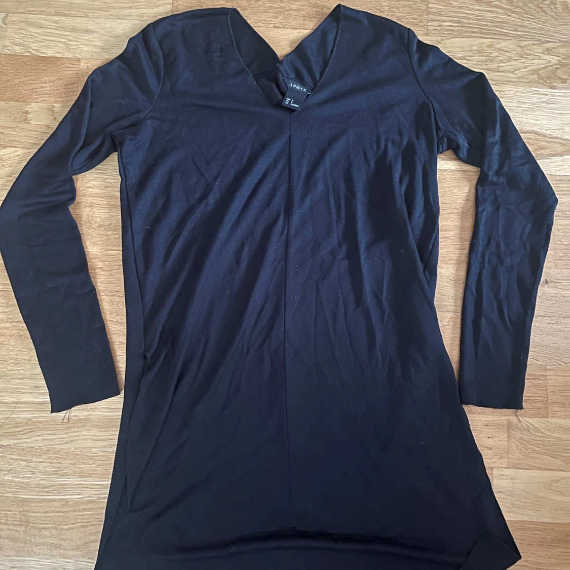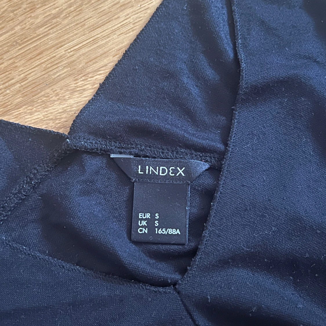 Mörkblå långärmad klänning från Lindex i storlek S. Klänningen har en enkel och rak passform med v-ringad hals och är tillverkad i mjuk bomull.
