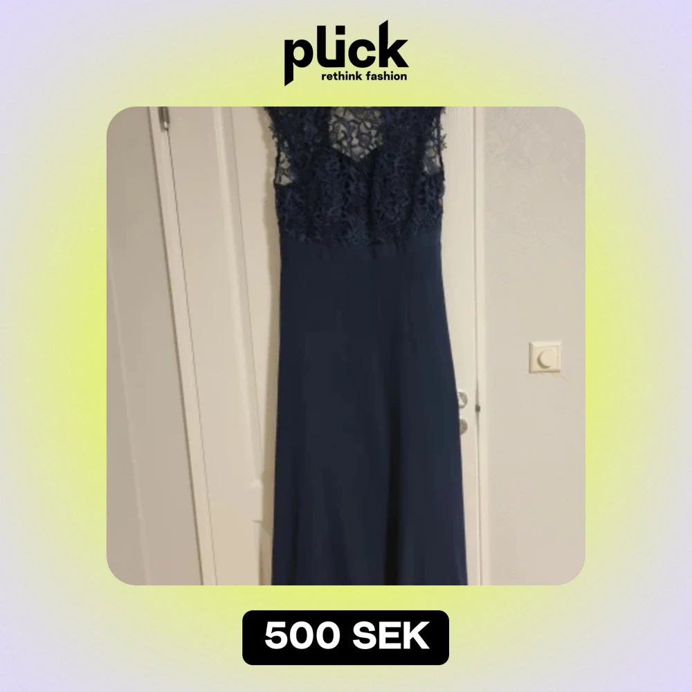Säljer en elegant mörkblå långklänning från bpc selection premium. Klänningen har en vacker spetsdetalj upptill och är ärmlös, vilket ger en stilren look. Perfekt för festliga tillfällen!
