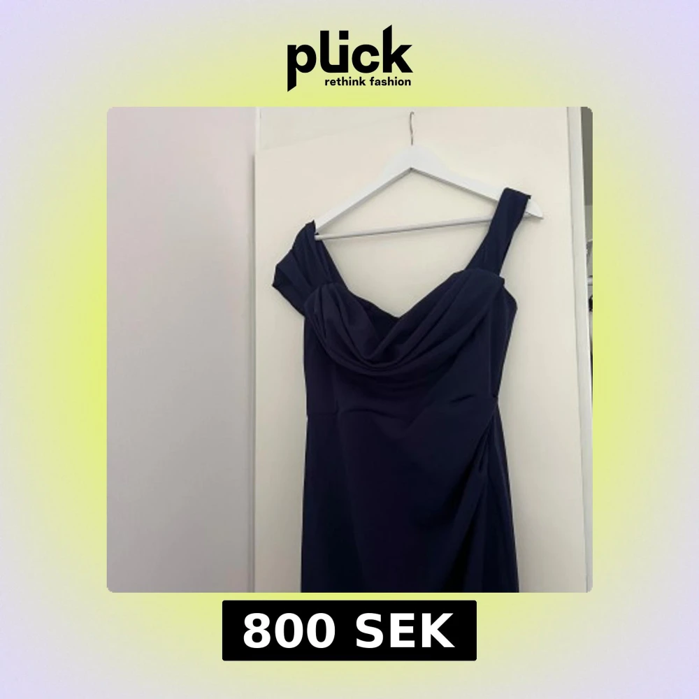 Elegant mörkblå långklänning från bubbleroom med snygg draperad urringning och breda axelband. Klänningen har en figurnära passform och stängs med dragkedja i ryggen. Perfekt för dig som vill sticka ut med en stilren och klassisk look. Bara använd en gång. Nypris 1099kr. Köparen står för frakten.