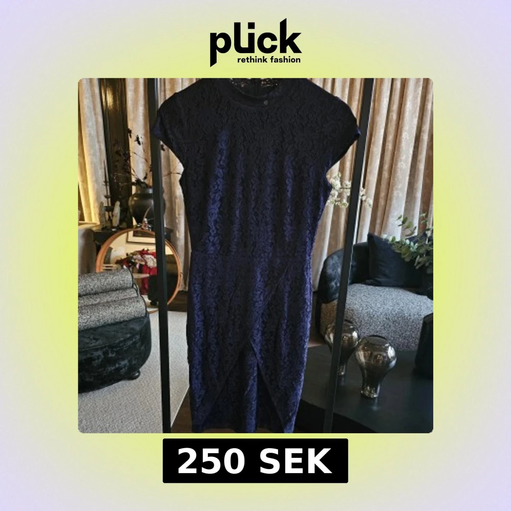 Supersnygg mörkblå klänning i spets med blommigt mönster och omlott-detalj framtill. Klänningen har korta ärmar och är vadlång, perfekt för dig som vill ha en elegant look. Materialet är mjukt och följsamt, och spetsen ger en lyxig känsla.