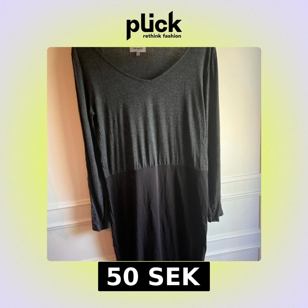Säljer en stilren mörkgrå klänning från Zalando Essentials. Klänningen har en v-ringad hals och långa ärmar, perfekt för en avslappnad look. Den är tillverkad i ett mjukt material som ger en bekväm passform. Oanvänd!
