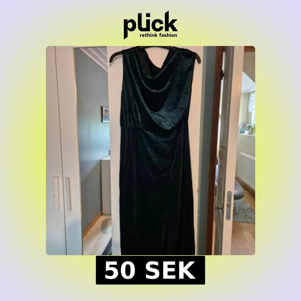 Elegant långklänning i mörkgrön sammet med snygg draperad halsringning. Klänningen är ärmlös och har en mjuk, lyxig känsla som verkligen sticker ut. Perfekt för dig som vill ha en klassisk och stilren look med lite extra edge.