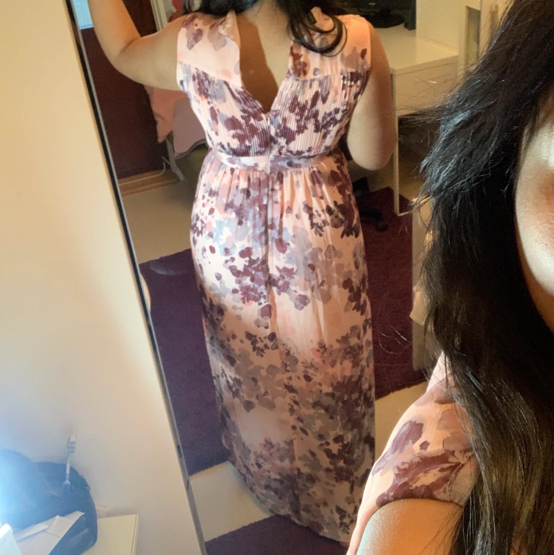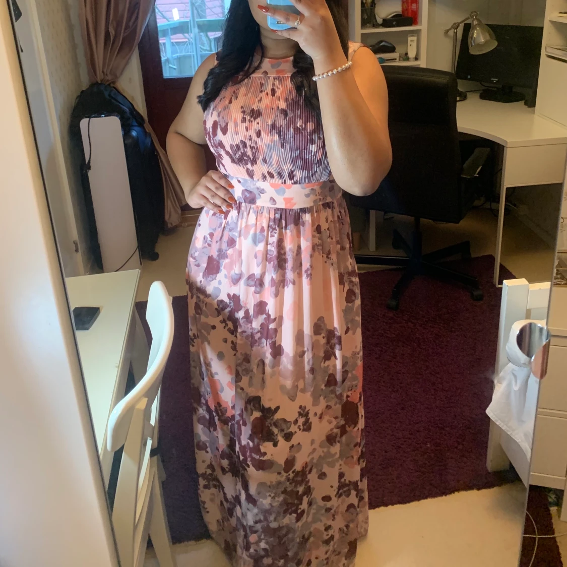 Jättefin rosa långklänning med mönster på! Den har använts två gånger och har inga defekter alls. Passar st 38/40. Nypris:600kr