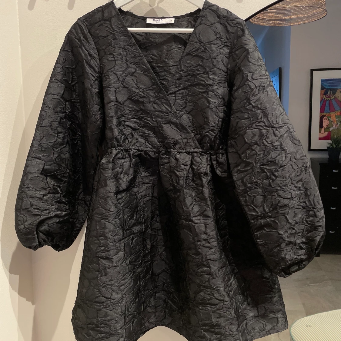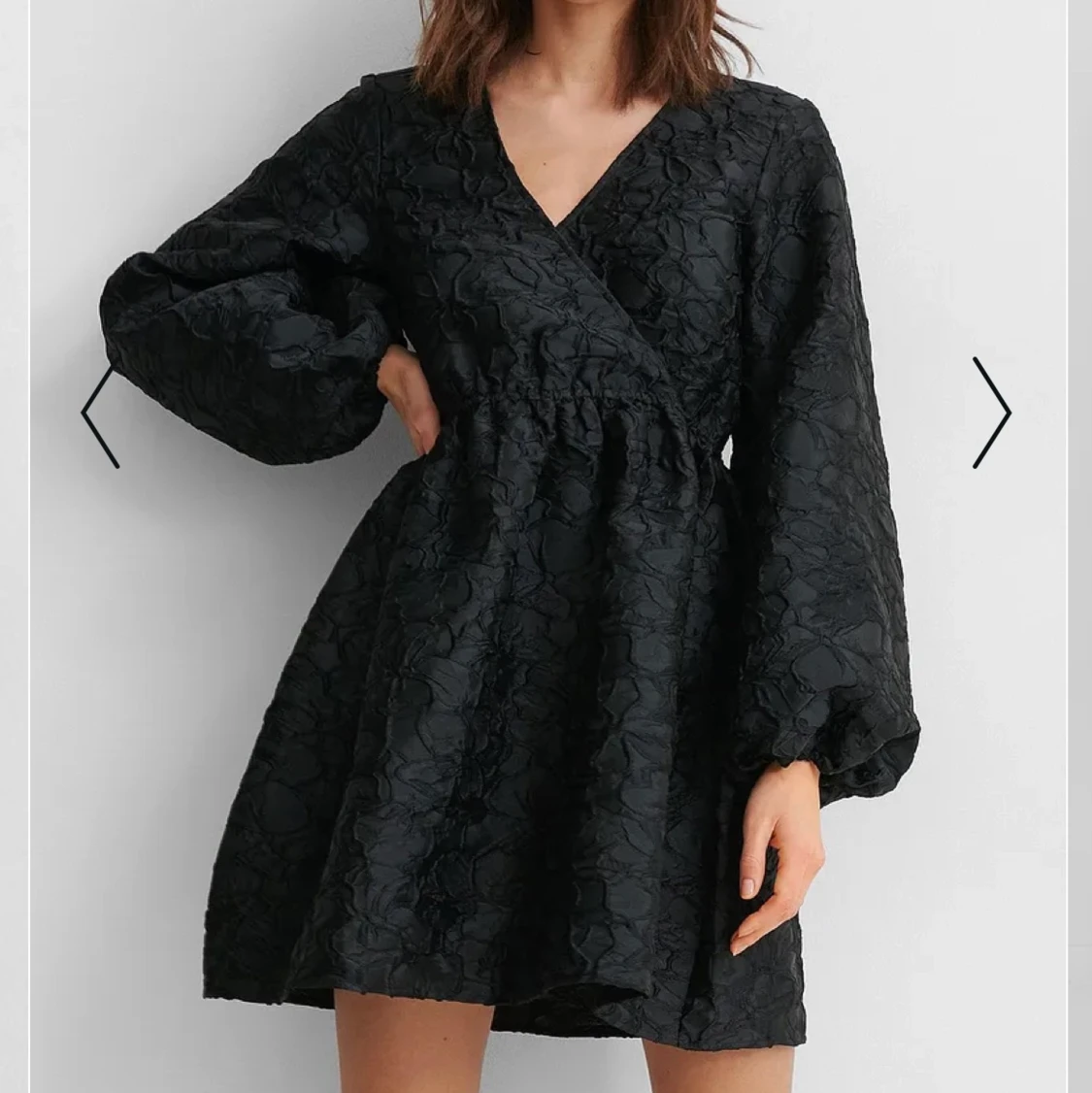 Supersnygg miniklänning med ballongärm och struktur. Som ny då den bara är använd en gång. Perfekt till nyår 🥳😍