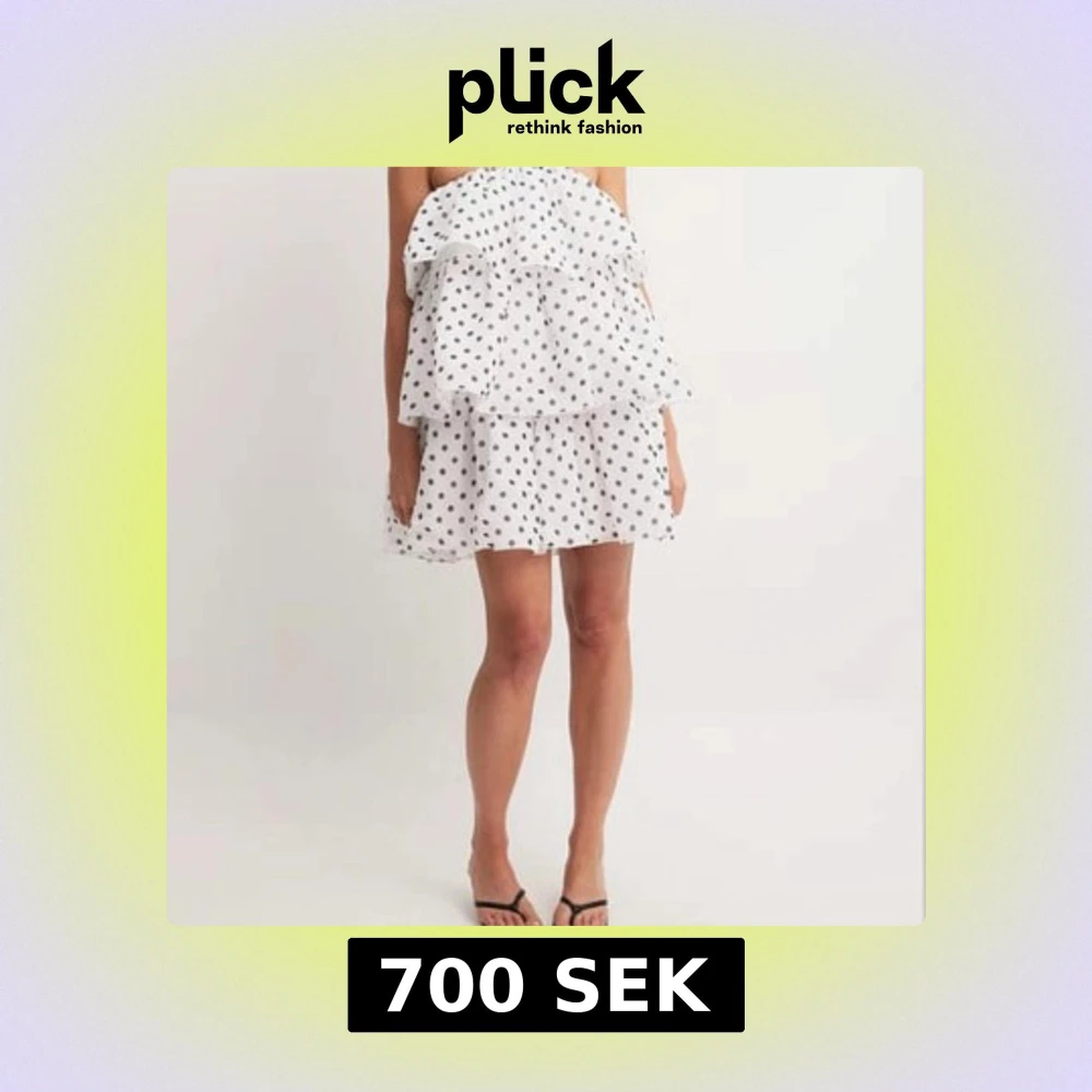 En söt vit axelbandslös klänning med svarta prickar med prislapp💓Slutsåld på nakd. Eftersom att den är helt oanvänd och jag enbart säljer då returtiden gått ut kan jag inte tänka mig att sänka pris