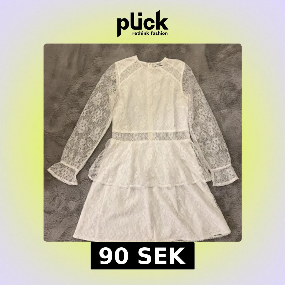 Säljer en elegant vit spetsklänning från NA-KD i storlek 34. Klänningen har långa spetsärmar och volangdetaljer i kjolen. Perfekt för speciella tillfällen, som till exempel studenten, med sin romantiska design.