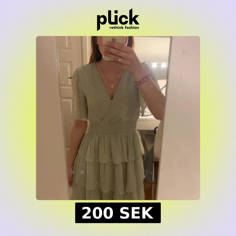 Grön smockad klänning med volanger från NA-KD! Stretchigt tyg vid midjan så den sitter bra. Jätte luftig och skön. Använd en gång.
