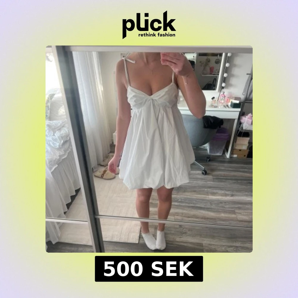 Säljer en söt vit kortklänning från NA-KD med smala axelband och knytband. Klänningen har en luftig passform och en v-ringad design framtill. Perfekt för studenten!💕 Aldrig använd och har prislapppen kvar🌸Ny pris 600kr